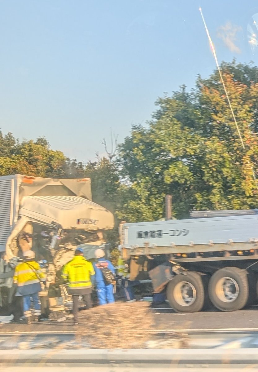 北関東道東行き伊勢崎IC合流部 行きに事故ったばかりで まだ暗かったけどキャビンの潰れ方がヤバイと思ったけど 明るくなって帰り対向来ないから やっぱり通行止めになってるし 鑑識だが?刑事だか?の白のボロ覆面が帰って行ったから やっぱり◯◯事故かなぁ? #北関東道 #通行止め pic.x.com/zIqZkcmwIE