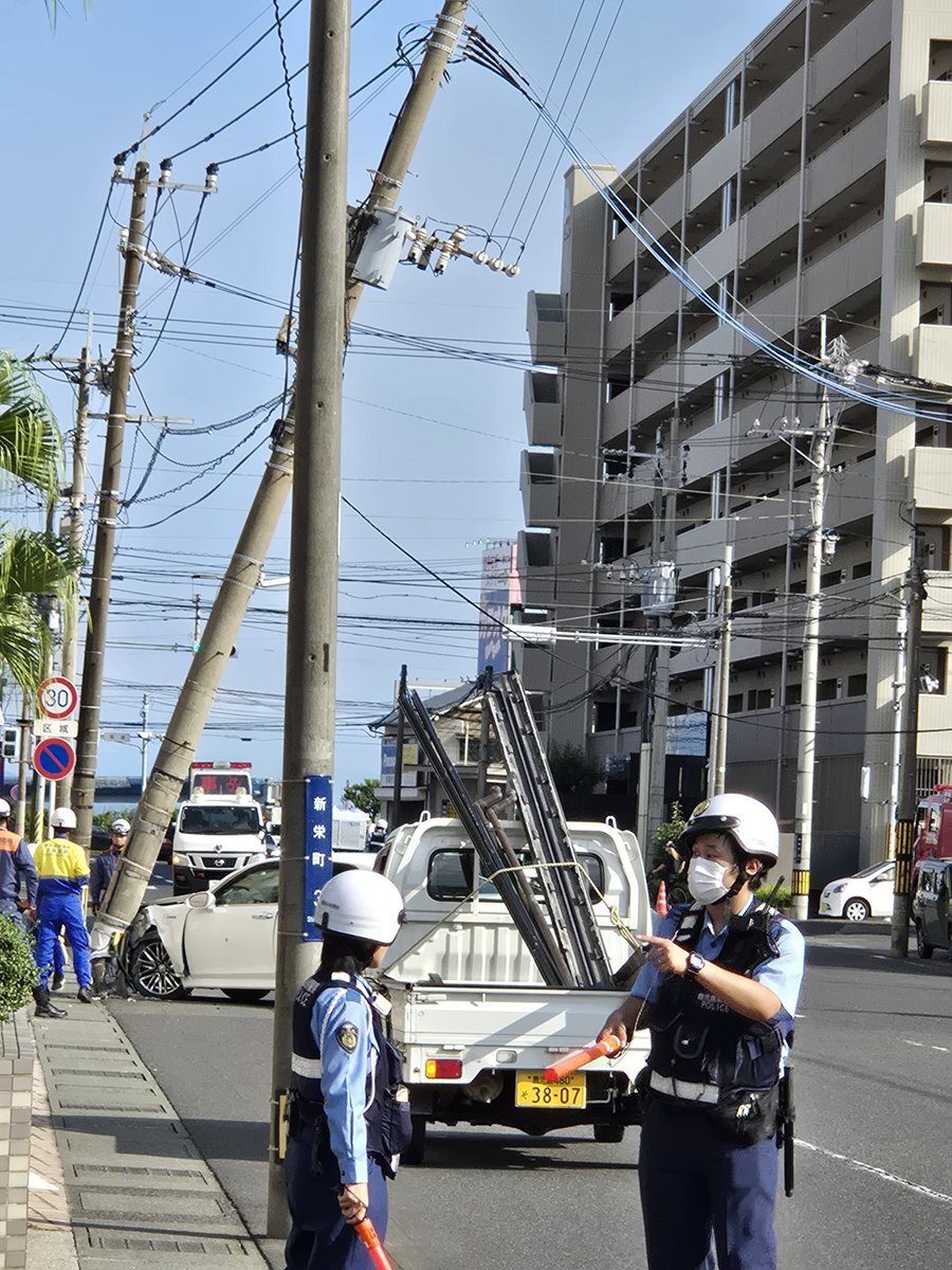 電柱に車が突っ込む事故 鹿児島市新栄町3-16
