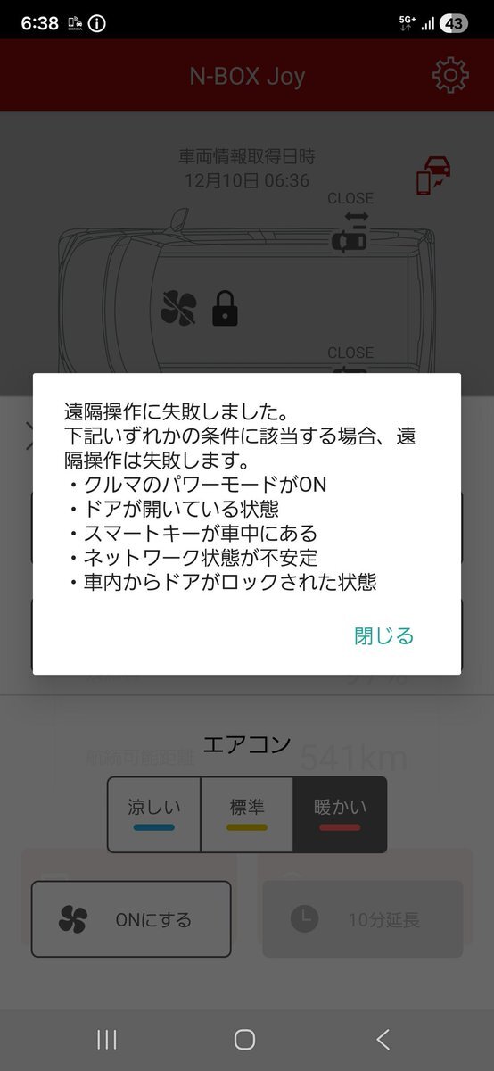 どなたかわかる人居ませんか💦 先日納車したばかりの HONDA NBOXJOYなのですが リモート操作のエアコンが付きません 初めて使う機能なので対処が分からず… 条件みても全部該当してないんです どうしたらいいでしょうか…… #HONDA #リモート操作 pic.x.com/UOyiMdkp3B