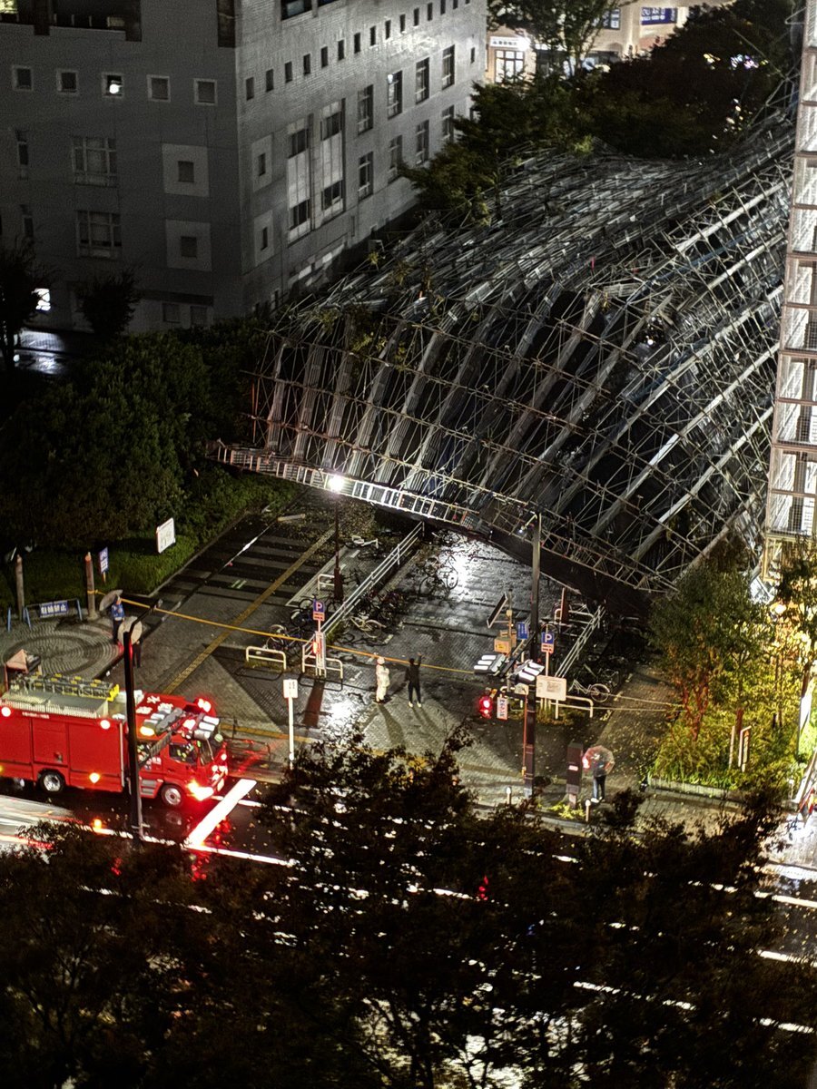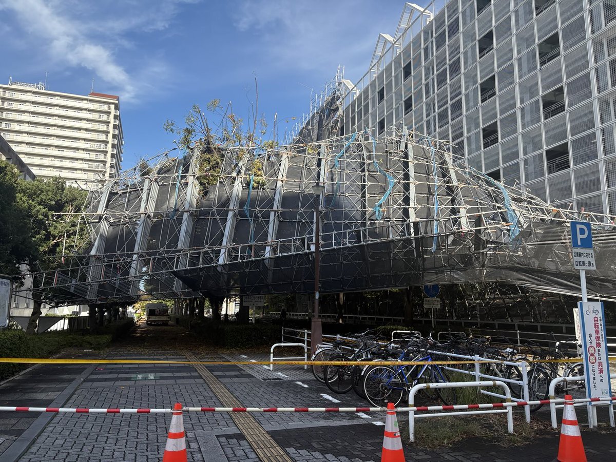 工事現場の足場が崩れる 千葉市緑区おゆみ野3丁目16-1 イオンスタイル鎌取