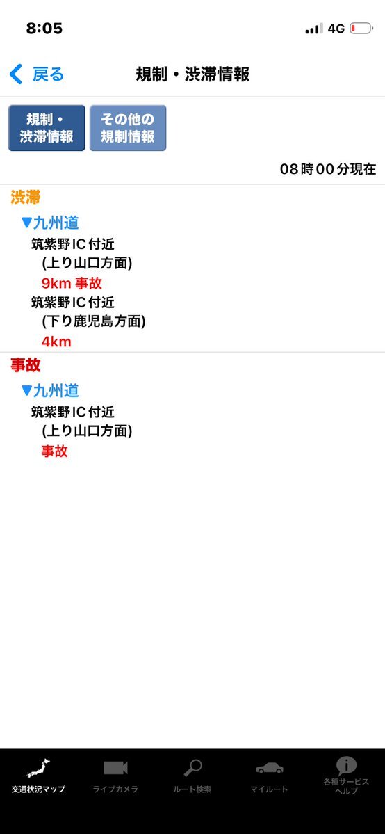 九州道 渋滞 トラックの事故 筑紫野IC付近
