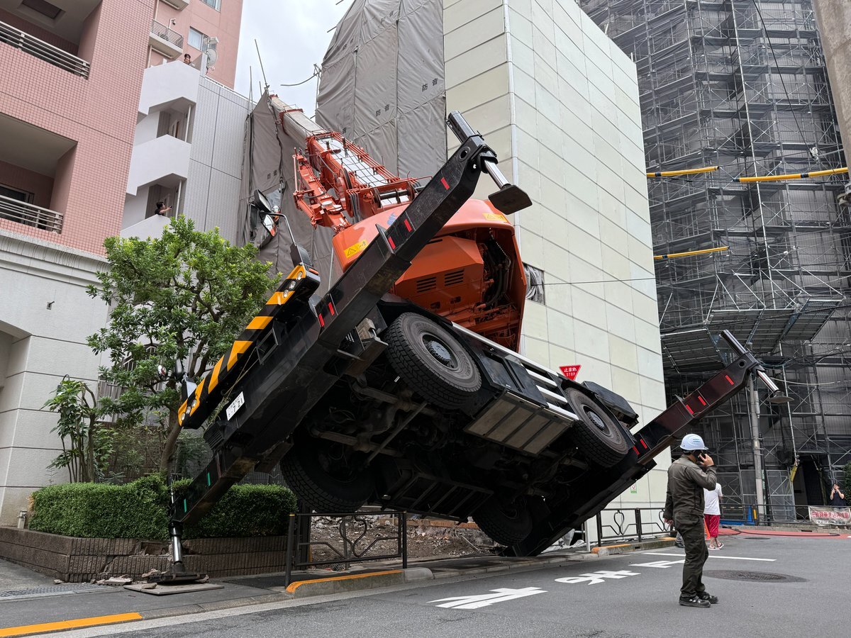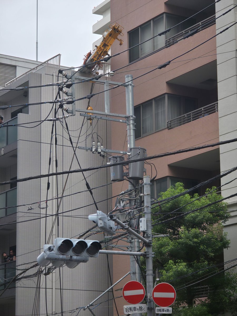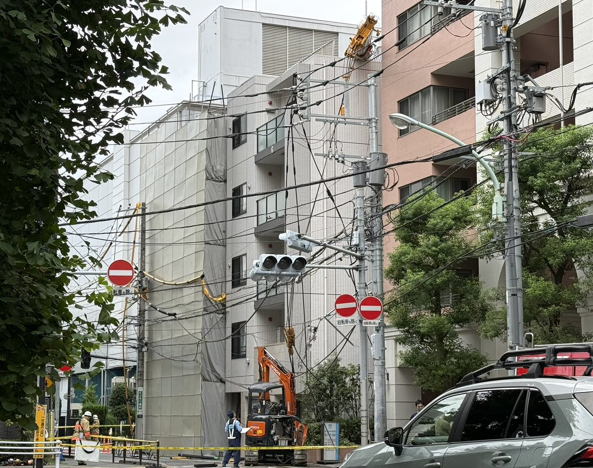 クレーン車の横転事故 電線が切れる 文京区小石川1丁目16-9