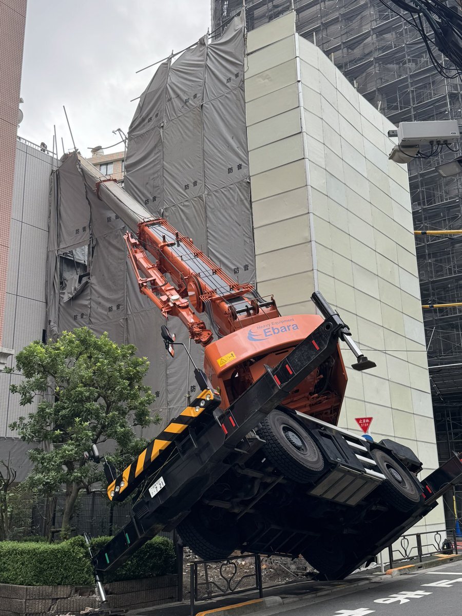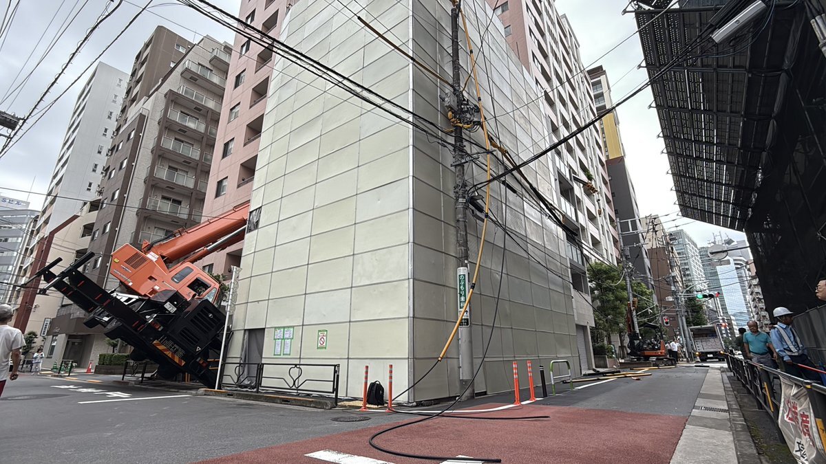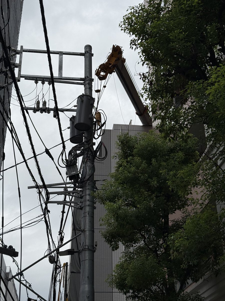 クレーン車の横転事故 電線が切れる 文京区小石川1丁目16-9