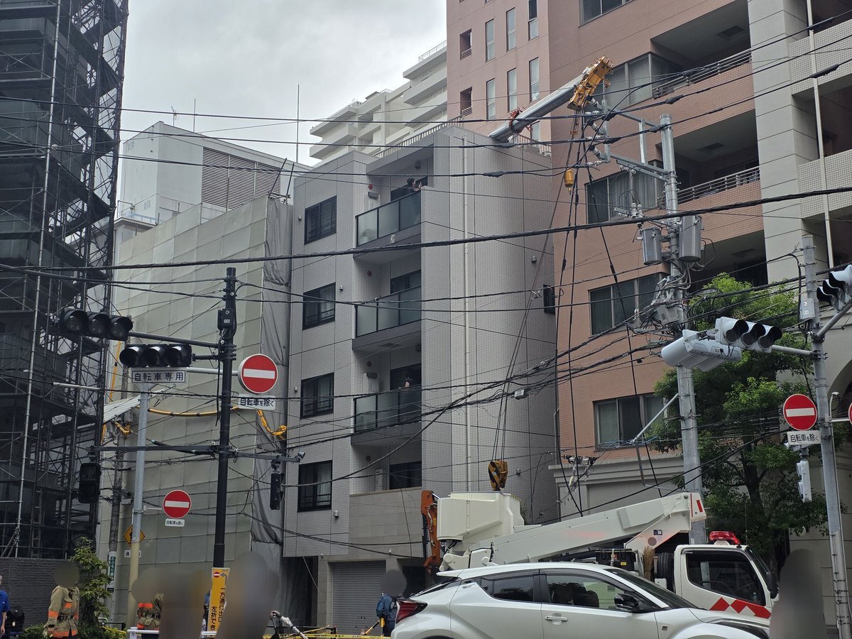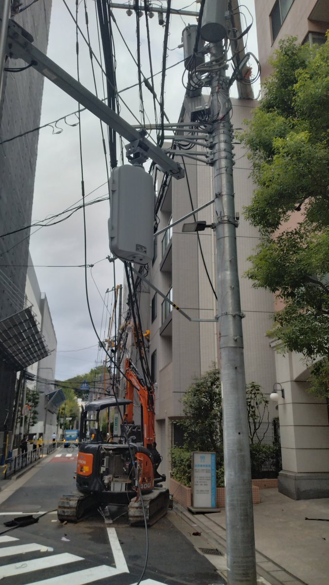 8:20ごろに小石川柳町のクリーニング屋ブランの跡地の解体作業中に重機が倒れて電線を切ってしまった模様。当時ドカンと凄い音と揺れがした。小石川一丁目の一部の地域で停電が発生している。現場はマンションやコンビニが多く、停電の影響を受けており、まだ復旧していない。 pic.x.com/xRb5GrVx1D
