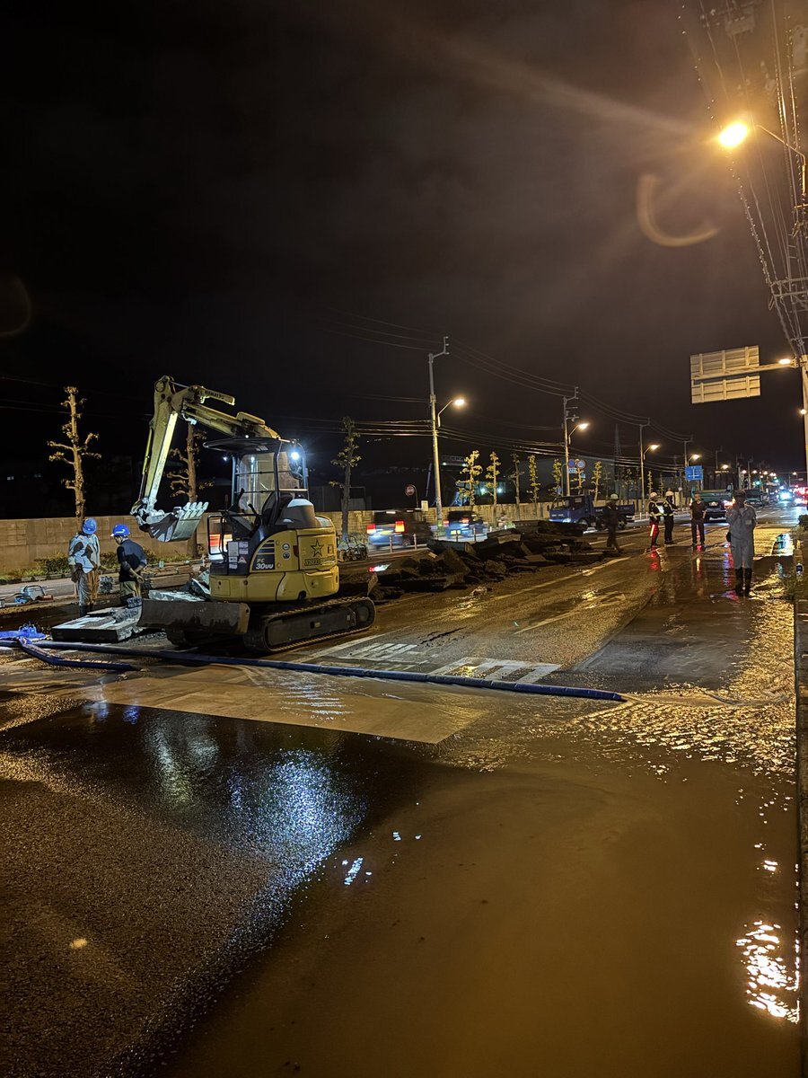 県道157号 通行止め 道路から水が噴出との情報 高松市 福岡町2丁目交差点付近