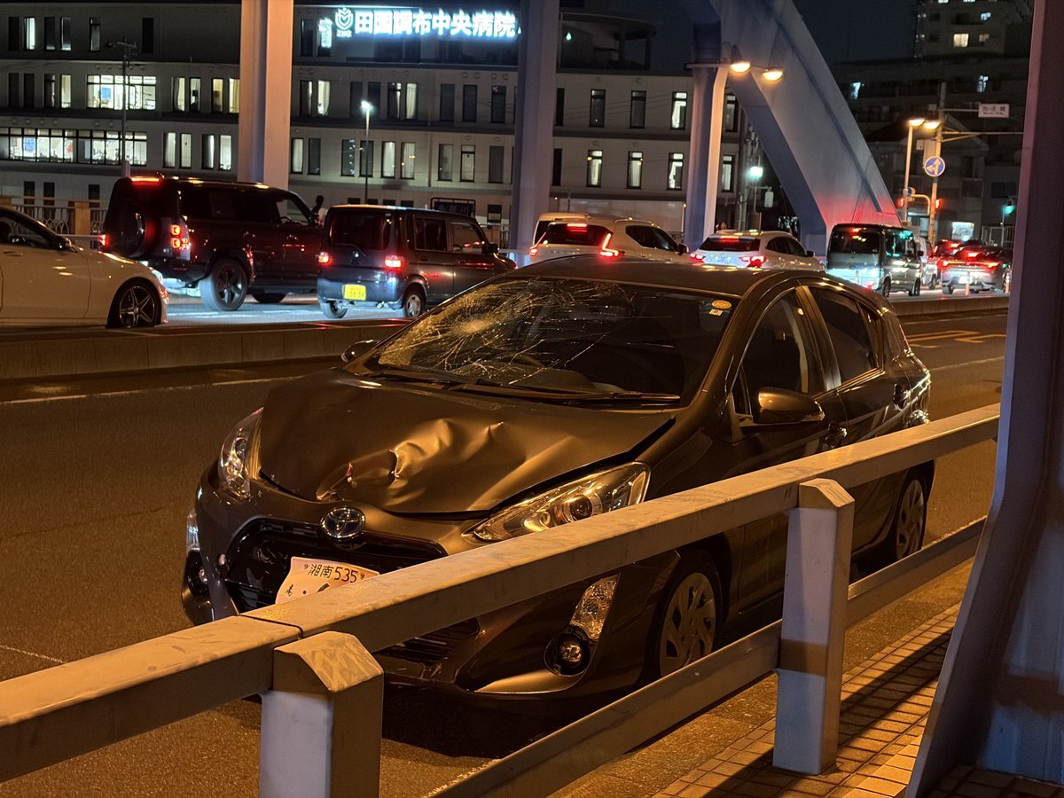 近所の多摩川丸子橋で車の多重事故があり、周辺道路が大渋滞していました。 先頭の事故った車を見るとボンネットに人を跳ねたような大きな凹みがあり… 一体何があったんだろう。 pic.x.com/b7WCFjEL5a