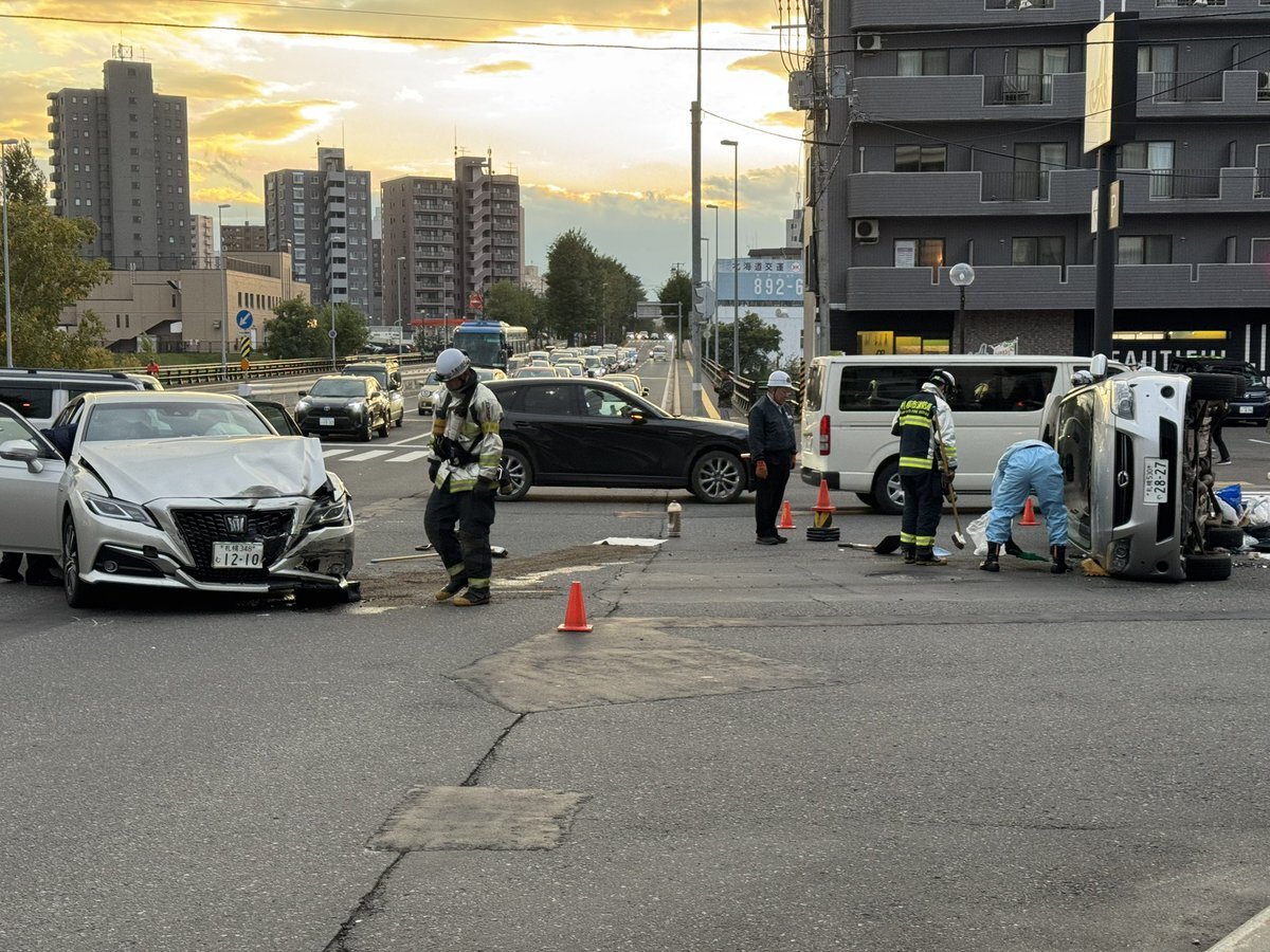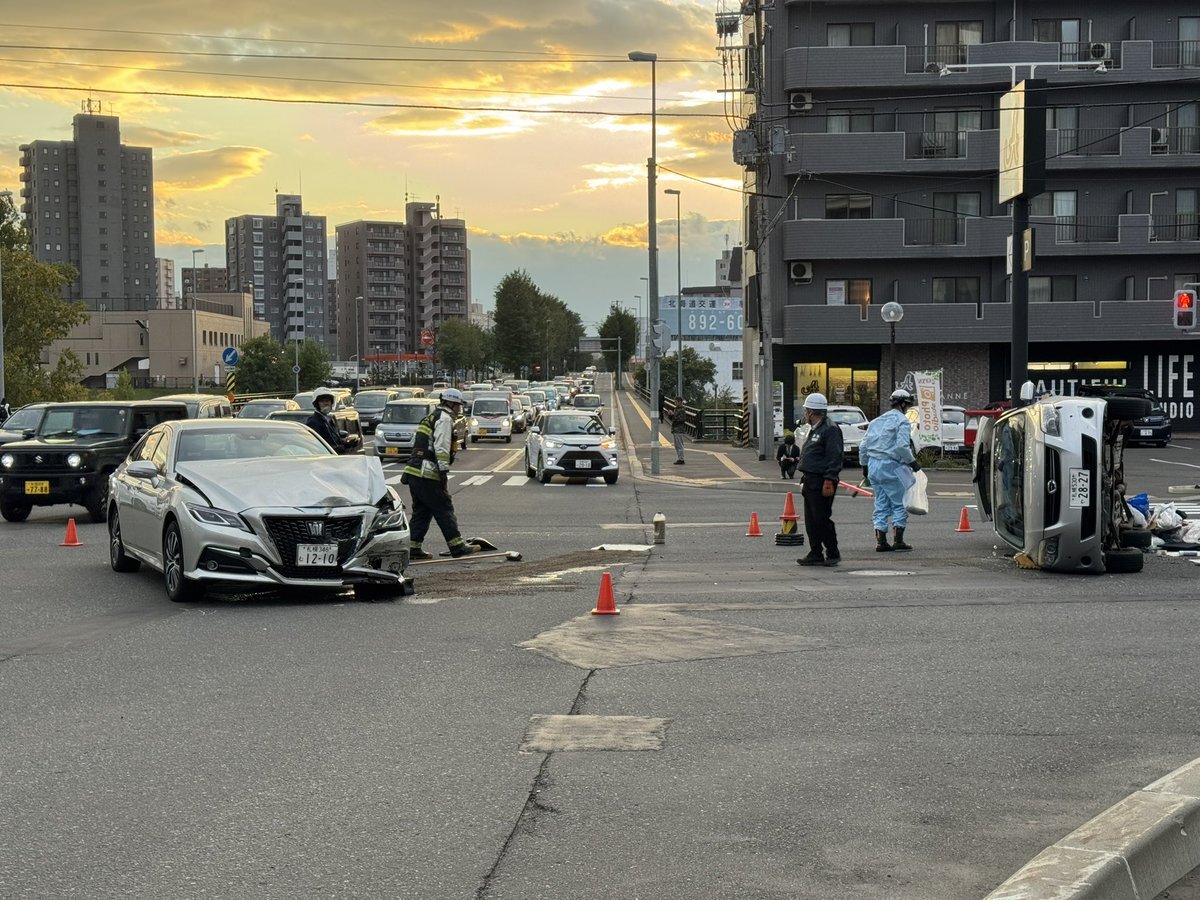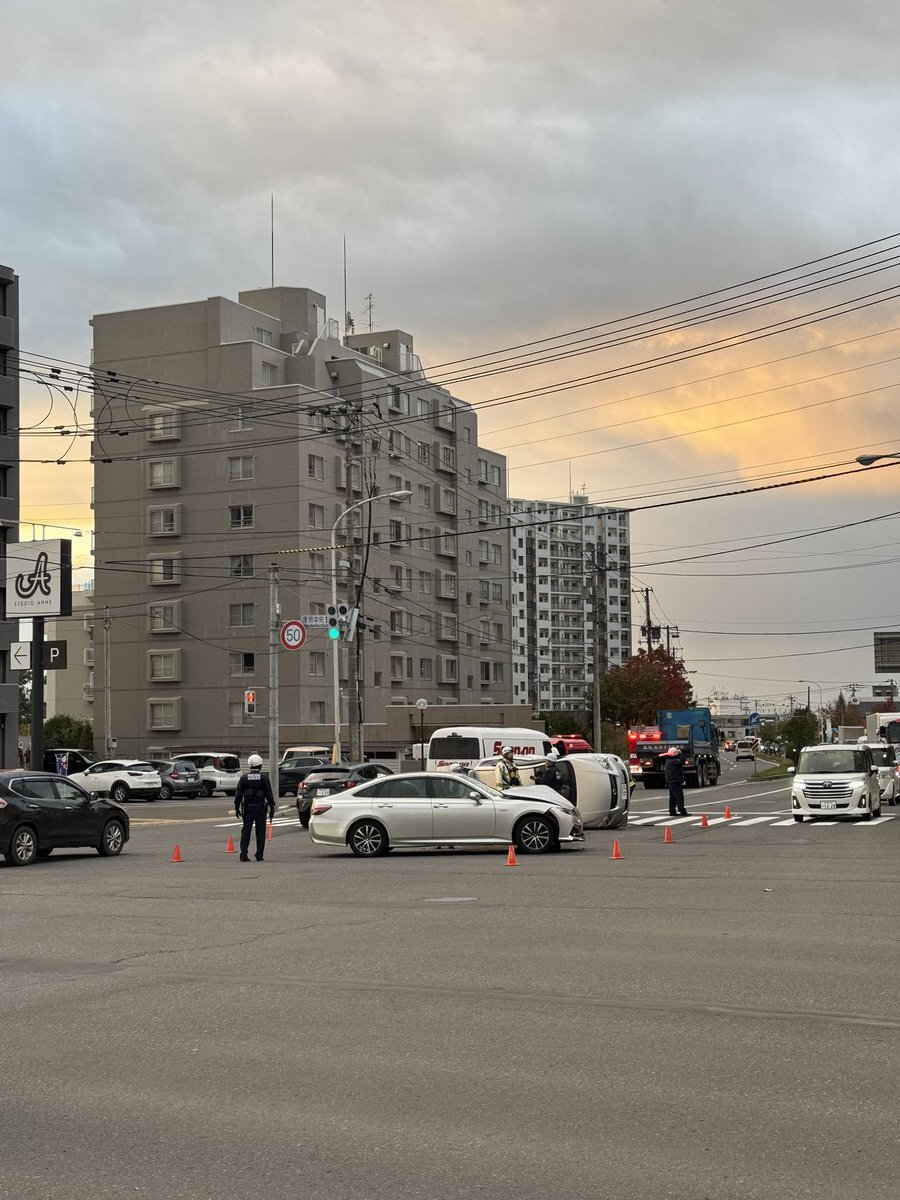 南郷通 渋滞 車の横転事故 札幌市厚別区厚別南1丁目1 厚別中央1−1交差点付近