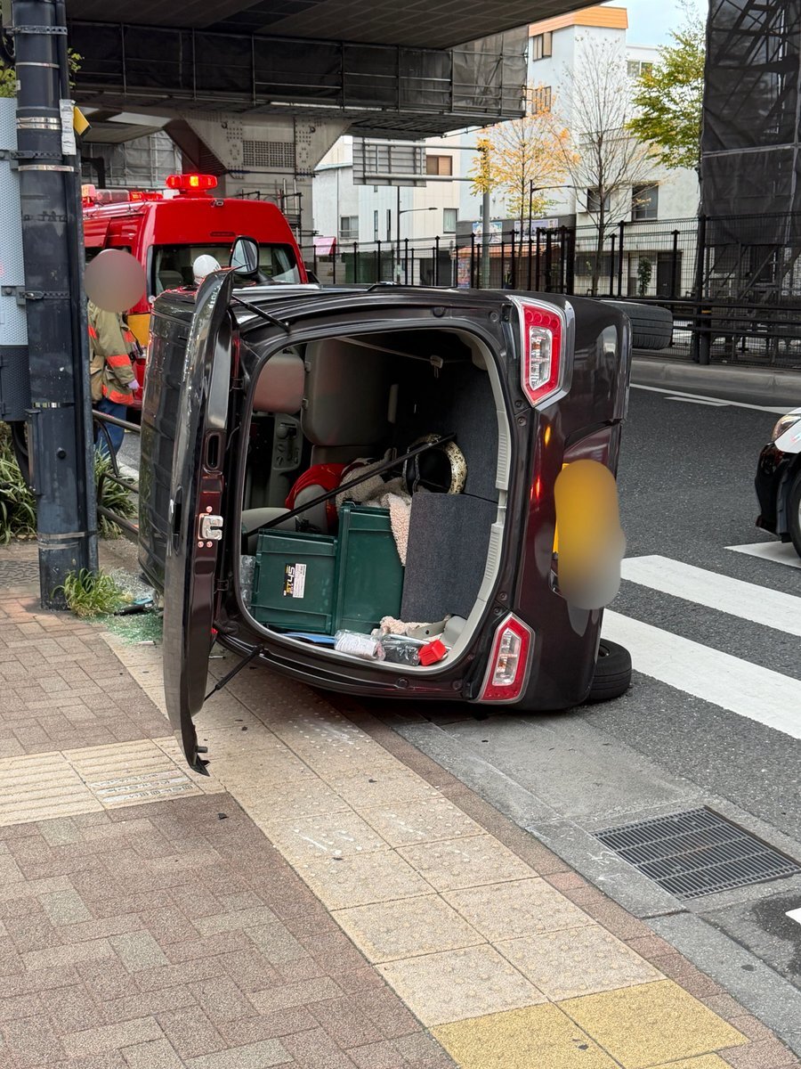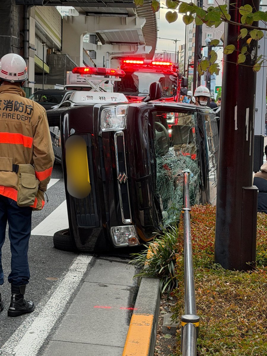 山手通り 車の横転事故 板橋区中丸町8-3