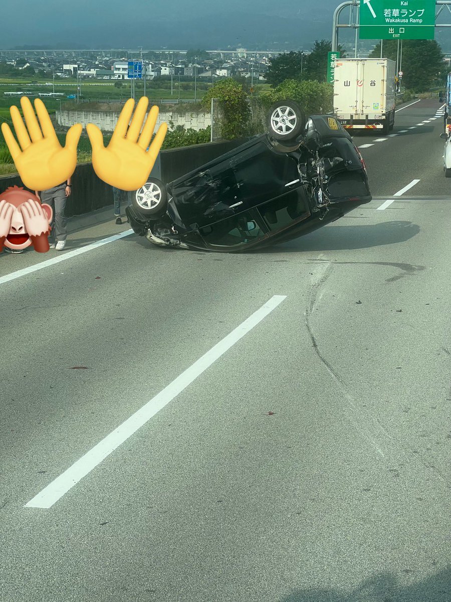新山梨環状道路 車の横転事故 南アルプス市 若草ランプ付近