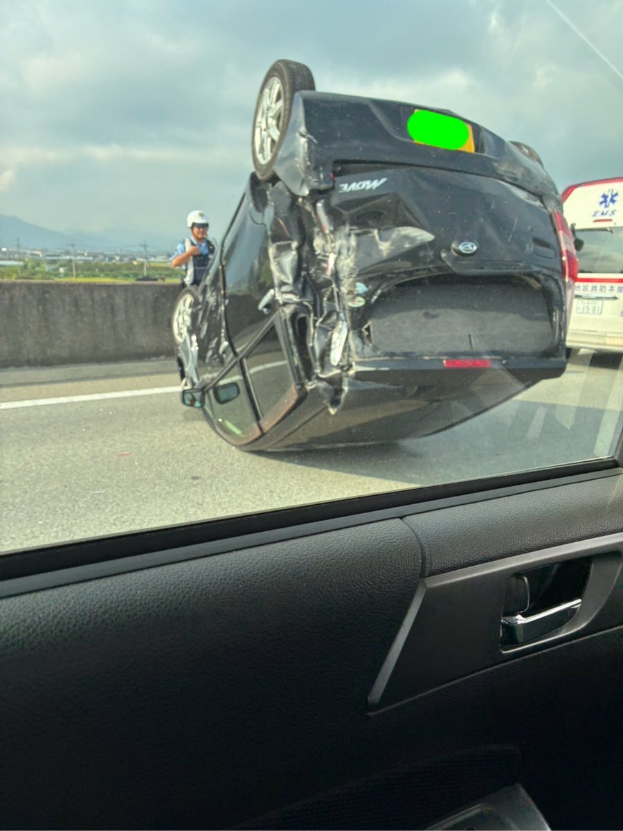 交差点もない環状道路でどうすれば横転するのか・・ トラックも絡んでいたようだけど、スピードと車間は当然として脇見などにも十分注意しないといけないですね。 #横転事故 pic.x.com/Rjyy7TzzS3