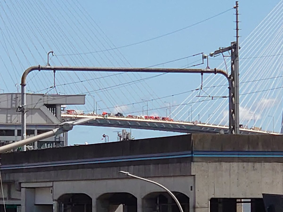 伊勢湾岸道、反対車線に橋の上に救急車と消防車が尋常じゃない量いた!黒の乗用車はぐちゃぐちゃに潰れてて…何かと思ったら5台の玉突き事故。通行中の方ご注意ください! すごく混んでる!!!! pic.x.com/FVsSs6mc0V