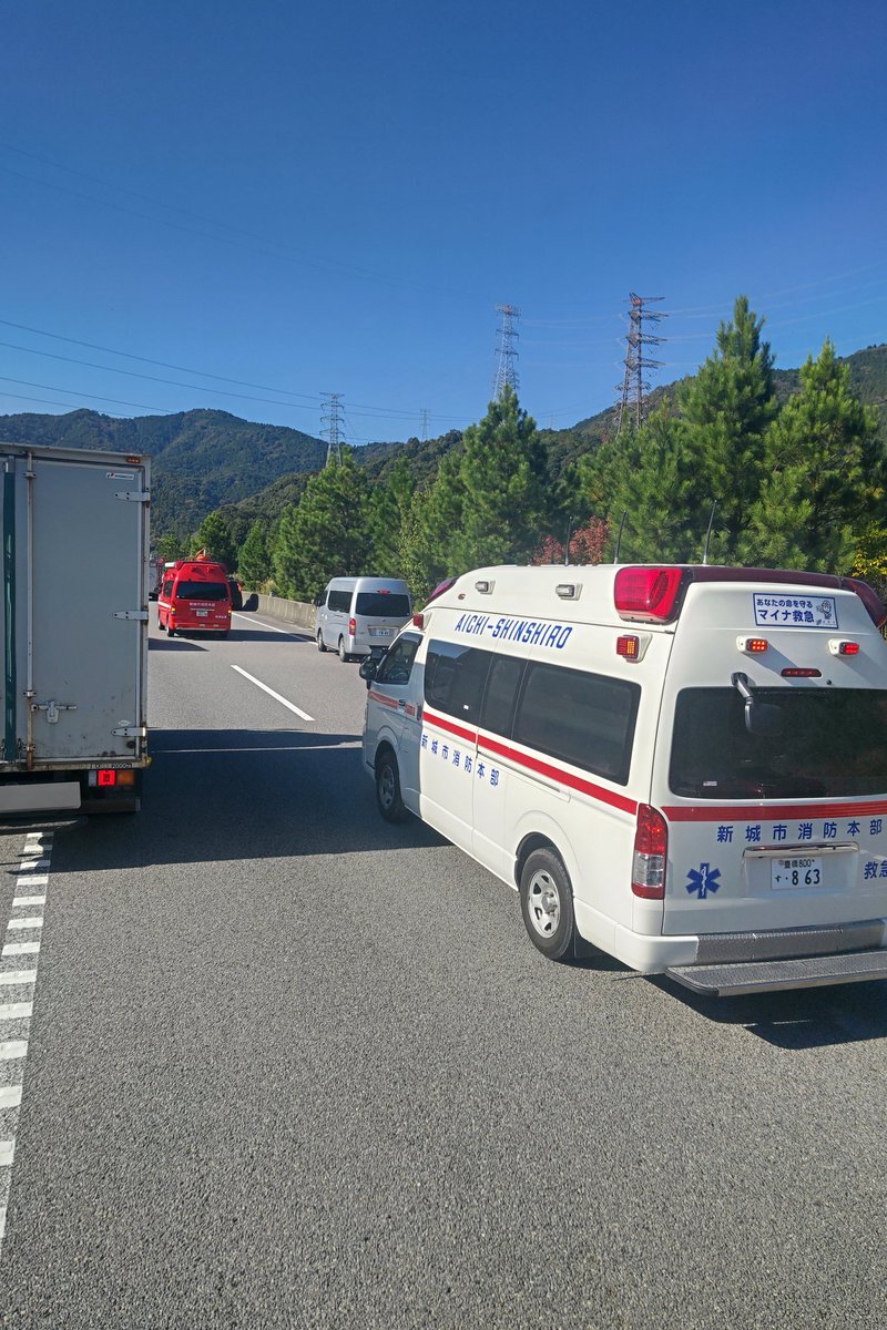 新東名下り岡崎東手前で事故渋滞(´・ω・`) 消防と救急が団体で行ったから通行止めにならなきゃいいけど… pic.x.com/BuD27U1k4w
