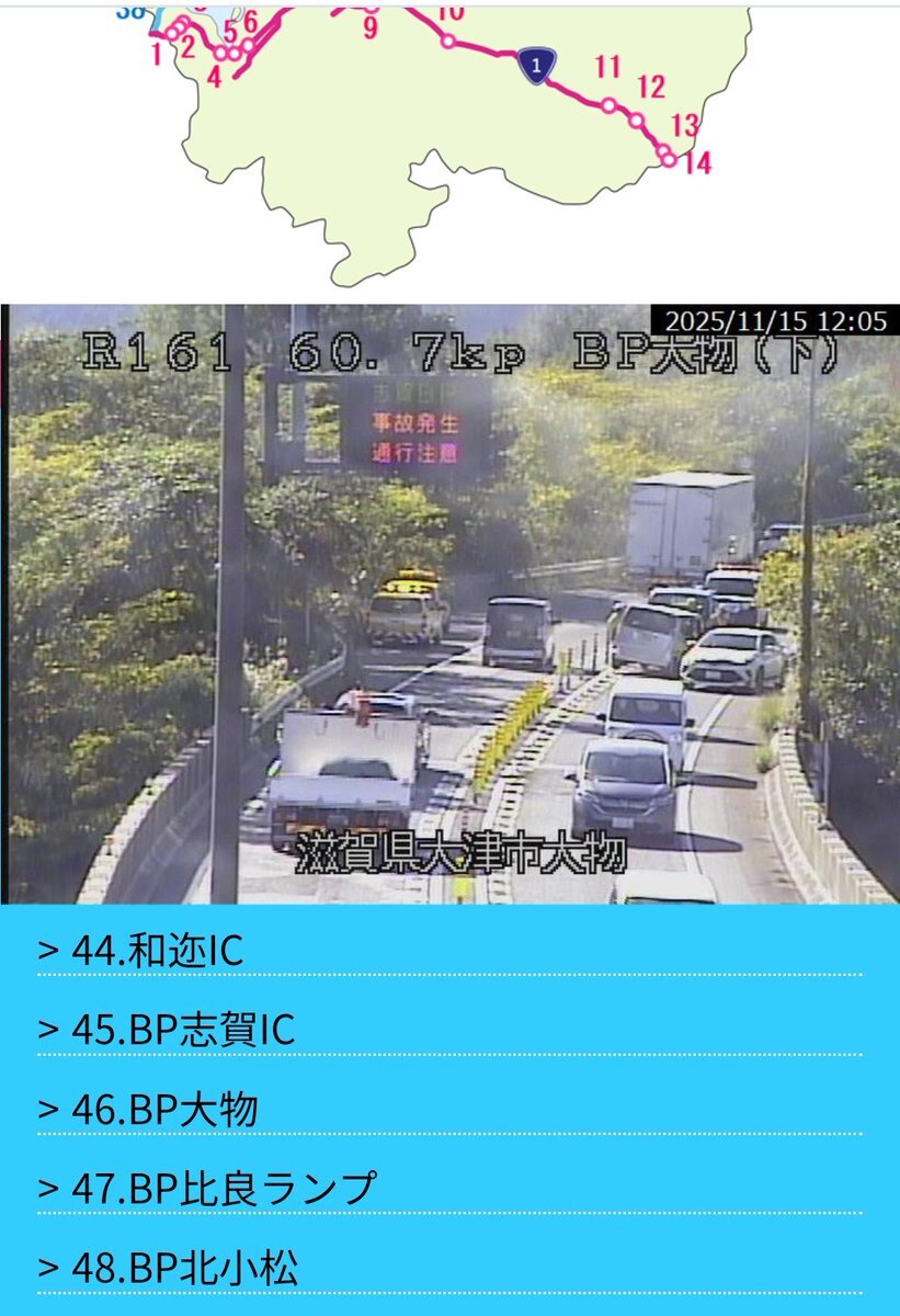 国道161号 渋滞 車の事故 大津市荒川 志賀IC付近