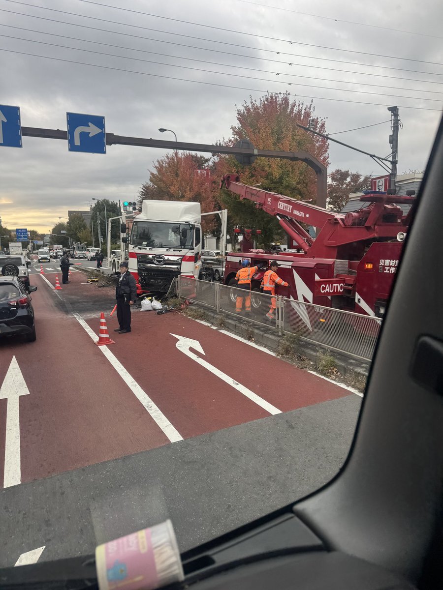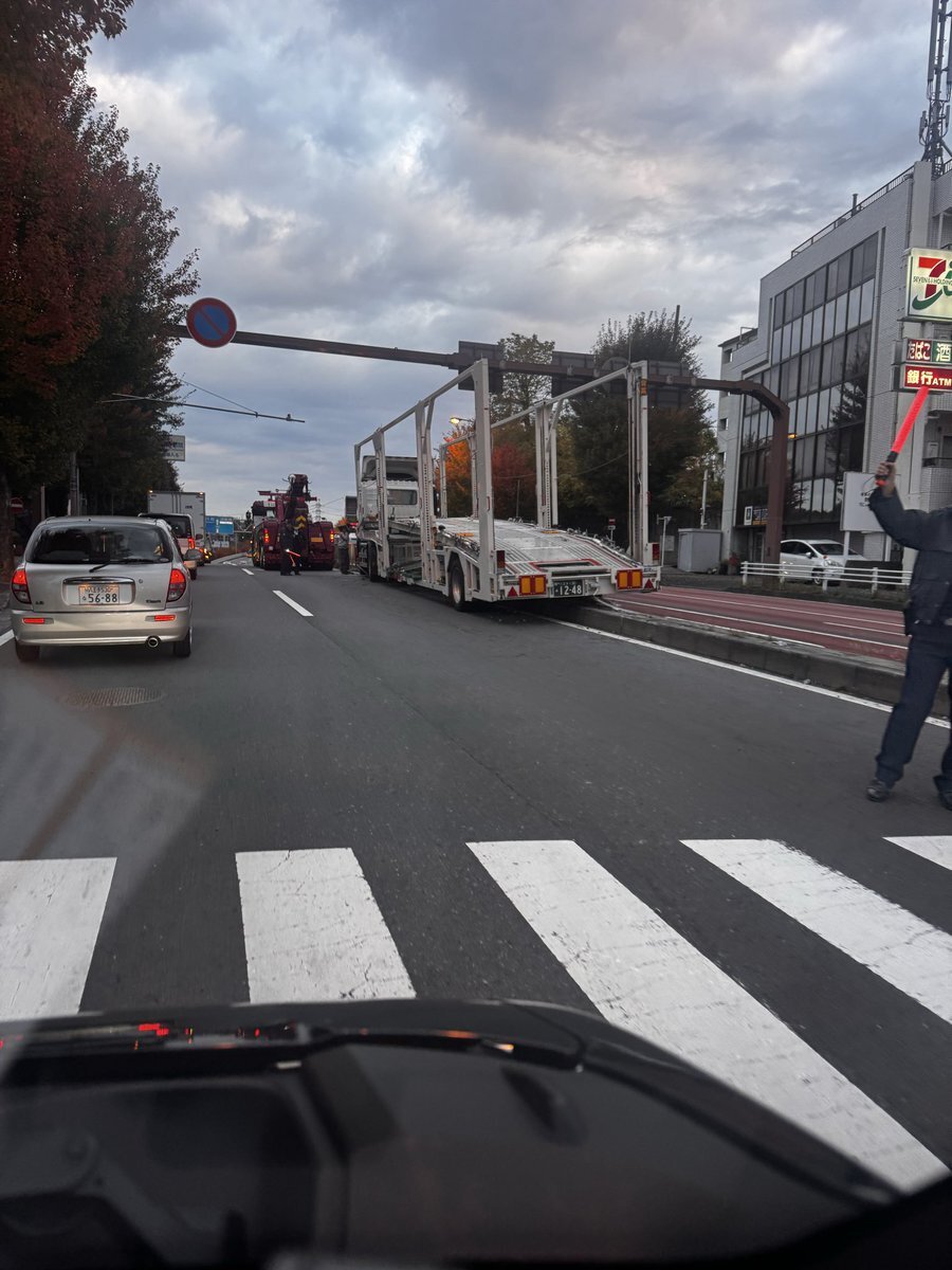 国道16号 渋滞 キャリアカーの事故 八王子市大谷町 大谷団地入口交差点付近
