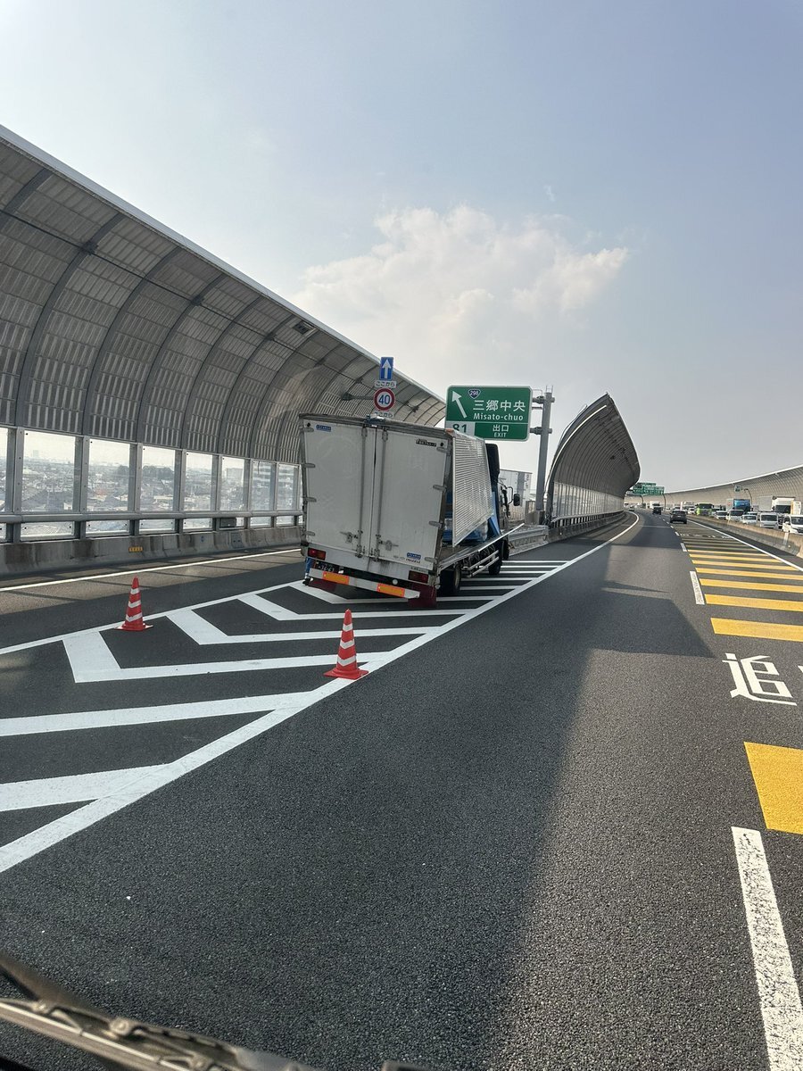 外環内回り三郷中央 トラック3台玉突き?ドライバー無事っぽいけどこれは時間かかりそう。 pic.x.com/CPLfR4OfFN