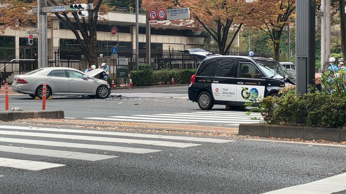 都庁裏手 新宿公園交差点で右直事故 pic.x.com/TcsiTLmxp4