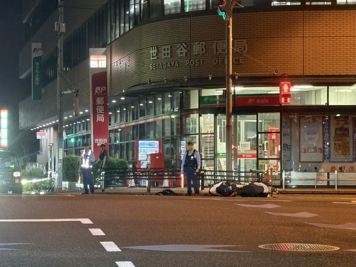 国道246号 バイクとタクシーの事故 世田谷区 世田谷警察署前交差点 ※撮影は未明