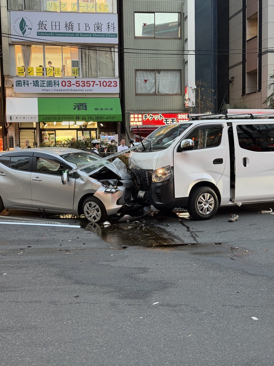 目白通り 車の事故 千代田区飯田橋4丁目5-13 飯田橋三丁目交差点付近 ※撮影は日中