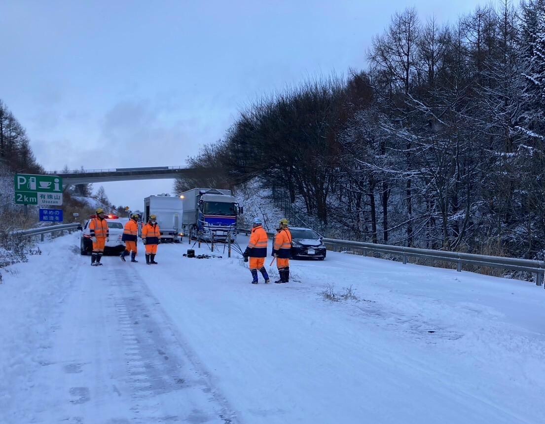 道央道 通行止め 車の事故との情報 雪の影響 有珠山SA〜室蘭IC