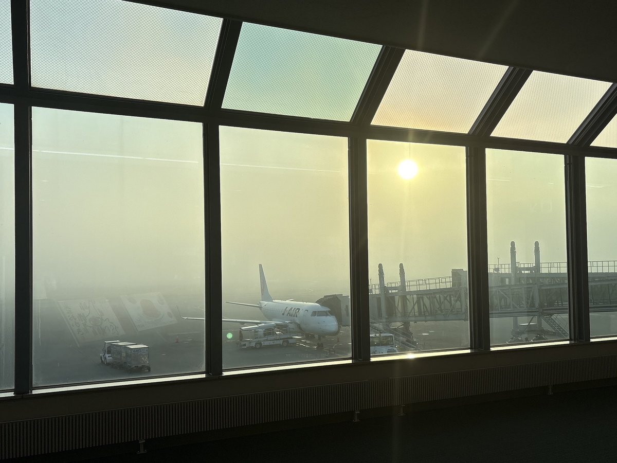 おはようございます 今朝は驚きの白さw 霧がすごい💦 にょっき〜も見えないよ いつの間にか空港はXmas🎄気分に(≧▽≦) 今日も良き1日を☆。.:*・゜ #イマソラ #新千歳空港 #見えないにょっき〜 pic.x.com/cDXlhx9DH2