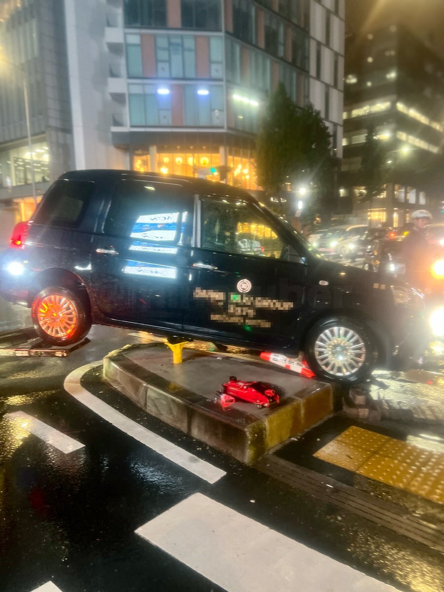 南青山3丁目の交差点でタクシーが縁石が亀になってるたに乗り上げてる pic.x.com/yRokafNq2a