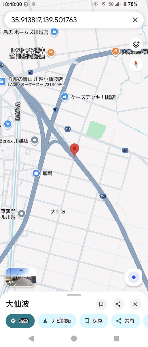 国道254号 通行止め 車の事故との情報 川越市小仙波969-1付近