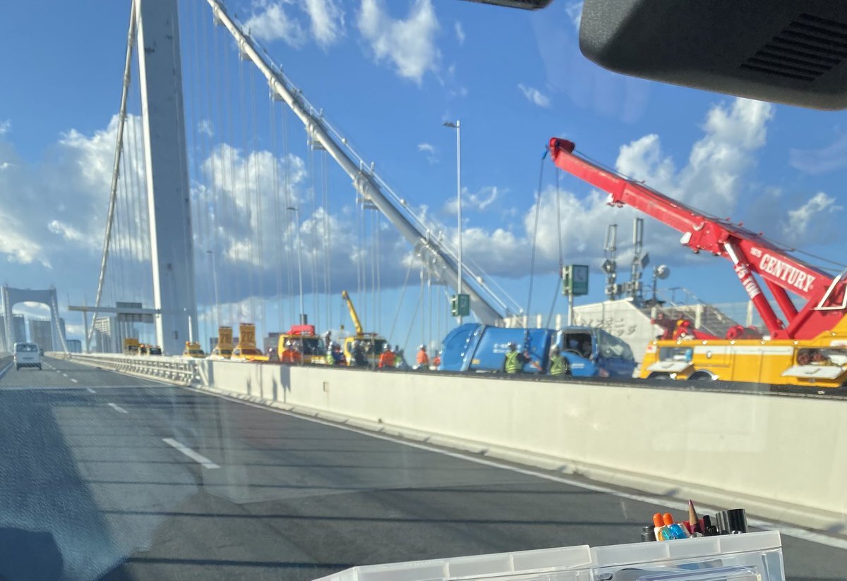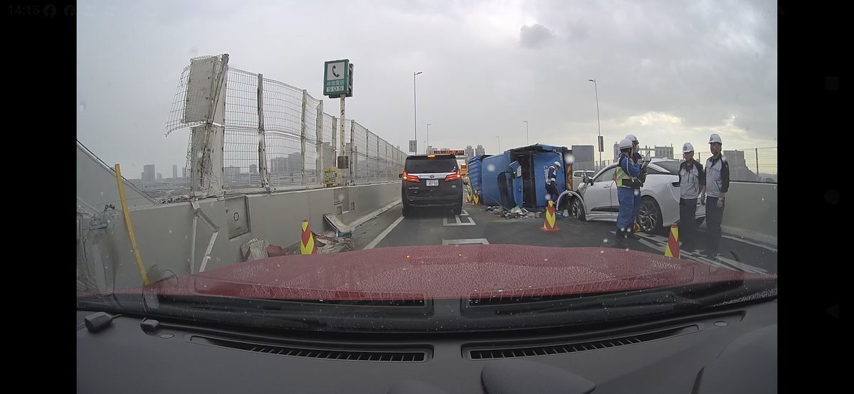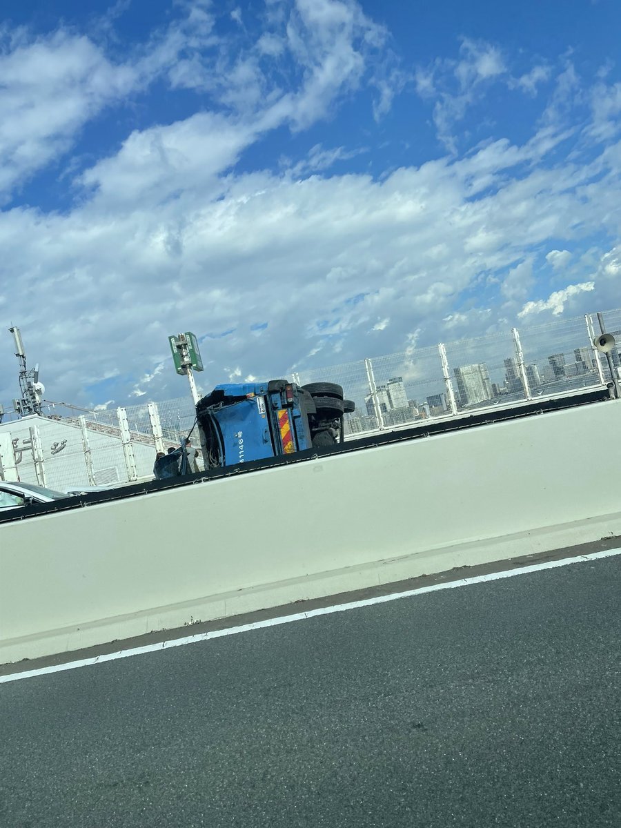 首都高11号台場線 ゴミ収集車と車の事故 レインボーブリッジ