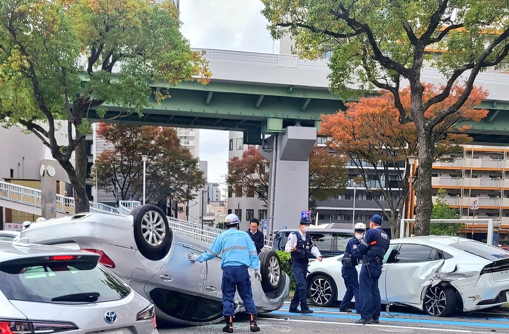 鶴舞公園前交差点で事故🚙💢 ちょっと渋滞してるので注意⚠️ #配達員という生き方 pic.x.com/ku12pzK09I x.com/shohappy9921/s…