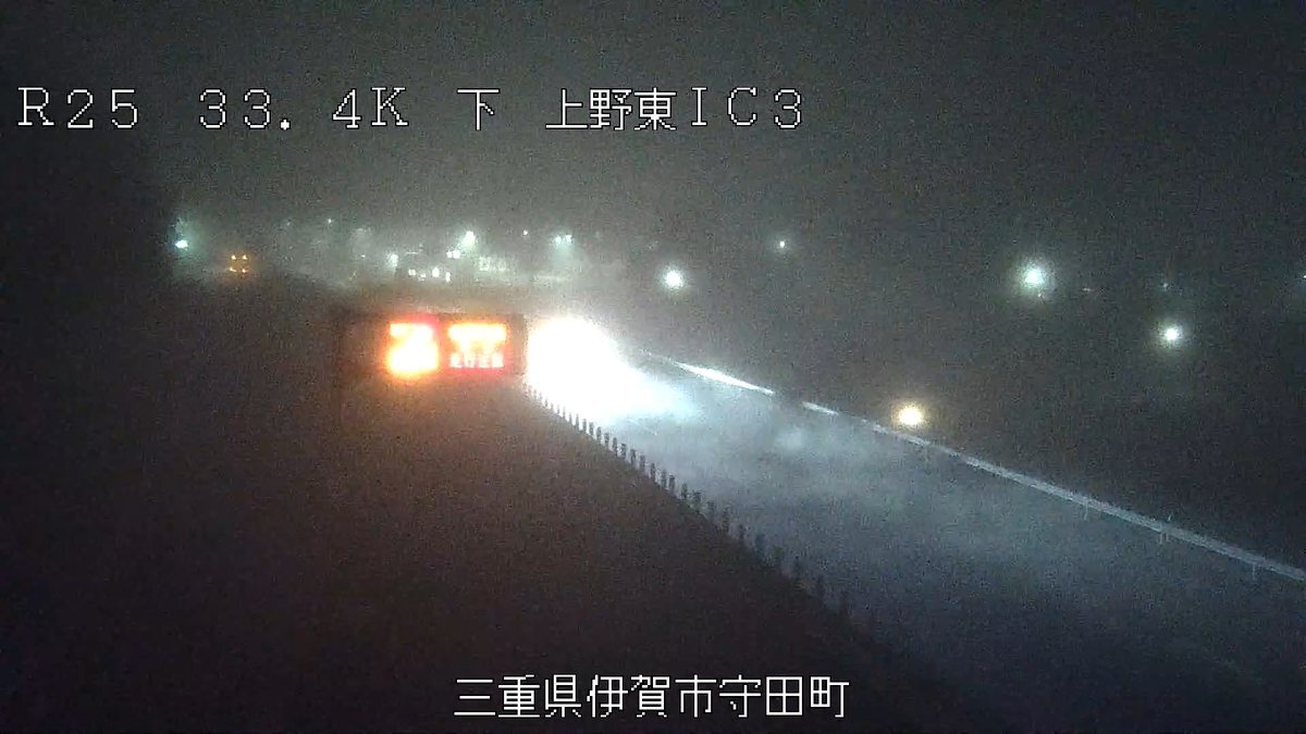【通行注意】11/27(木)0時00分現在、名阪国道伊賀ICから針ICにおいては、所々で濃霧が発生しており視界が悪化しております。注意して通行をお願いします。#名阪国道 #国道25号 #道路情報 ライブカメラの映像はこちら→cbr.mlit.go.jp/hokusei/traffi… pic.x.com/6g7vK3cK1K