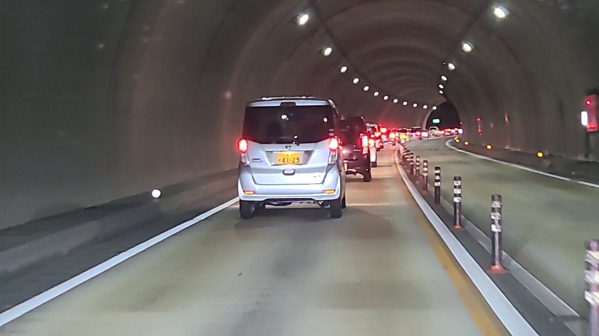 バイパスのトンネル内で後ろからパトカーがサイレン鳴らして来たんだけど、避けるとこなかったから困った……中央はポールあるし んでもってマイクでなんか言ってるんだけどトンネル内反響してわけわからん…… 結局トンネル抜けたとこですぐ避けたけど…今から渋滞するのかな #東広島バイパス事故
