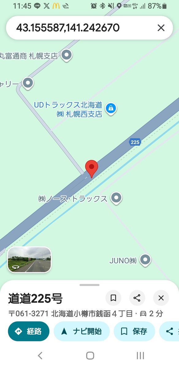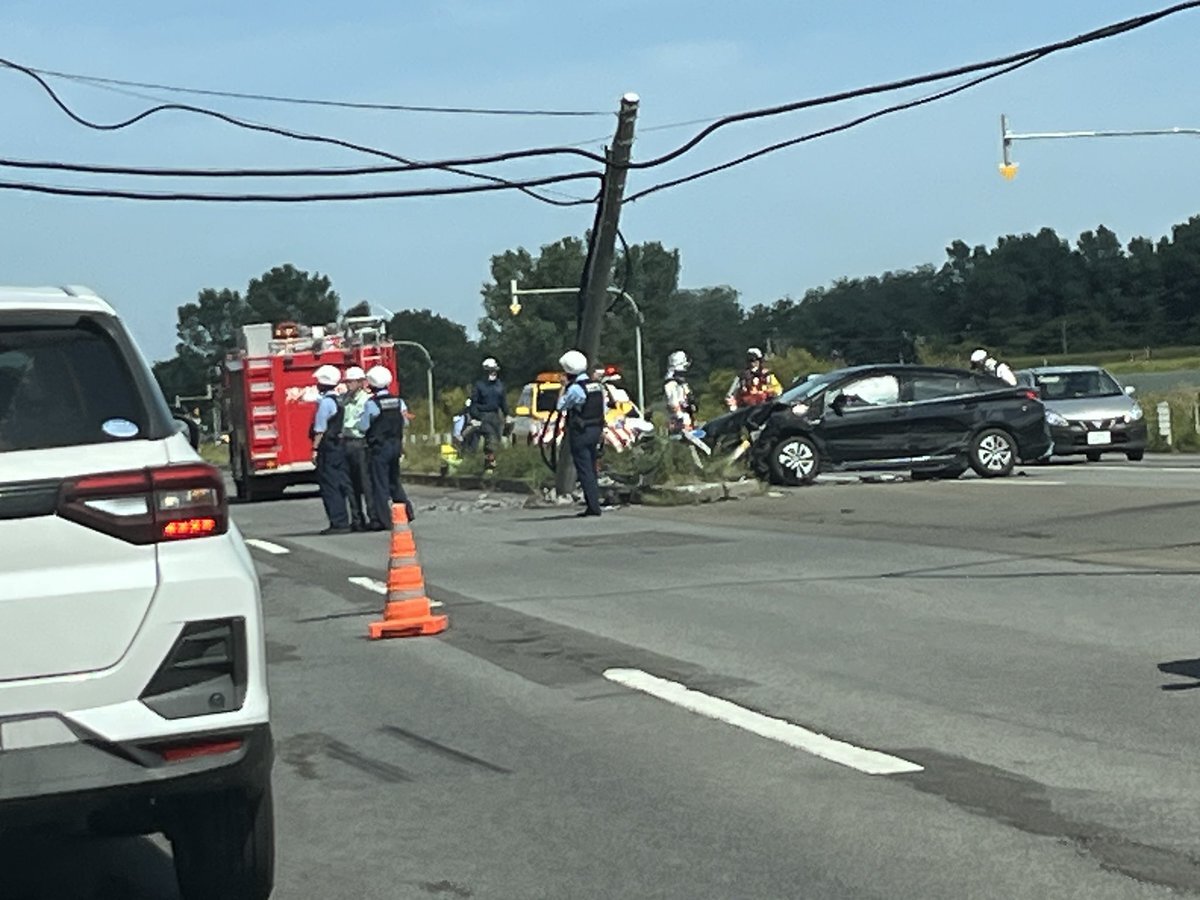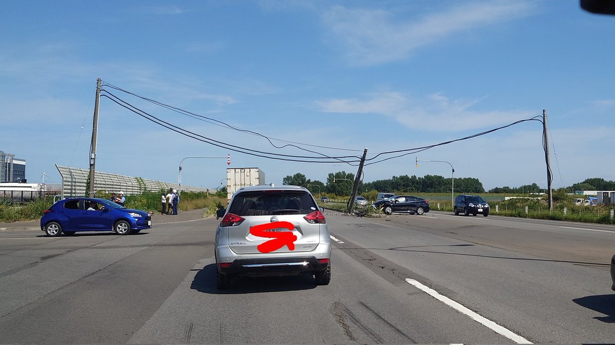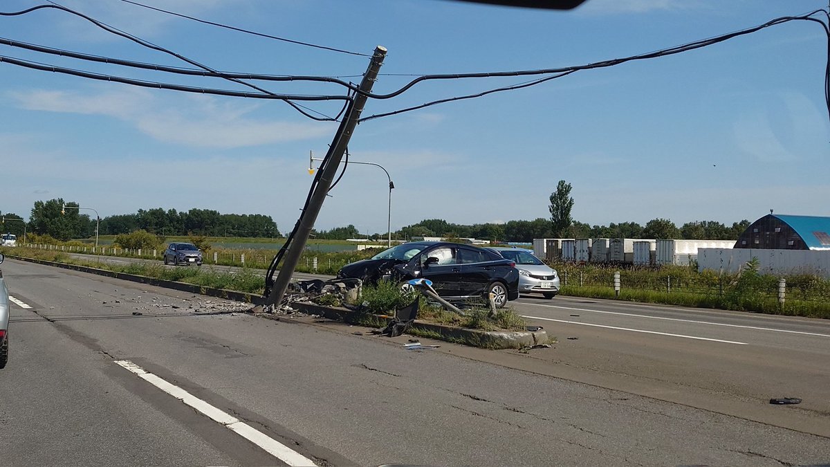 国道337号 電柱に車が突っ込む事故 電柱が折れる 小樽市銭函4丁目176付近