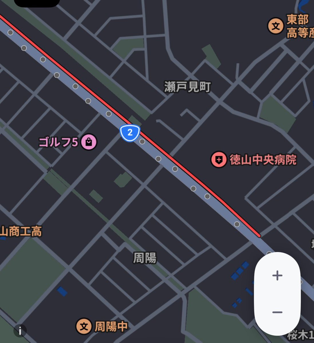 国道2号 通行止め 車の事故との情報 周南市桜木1丁目付近