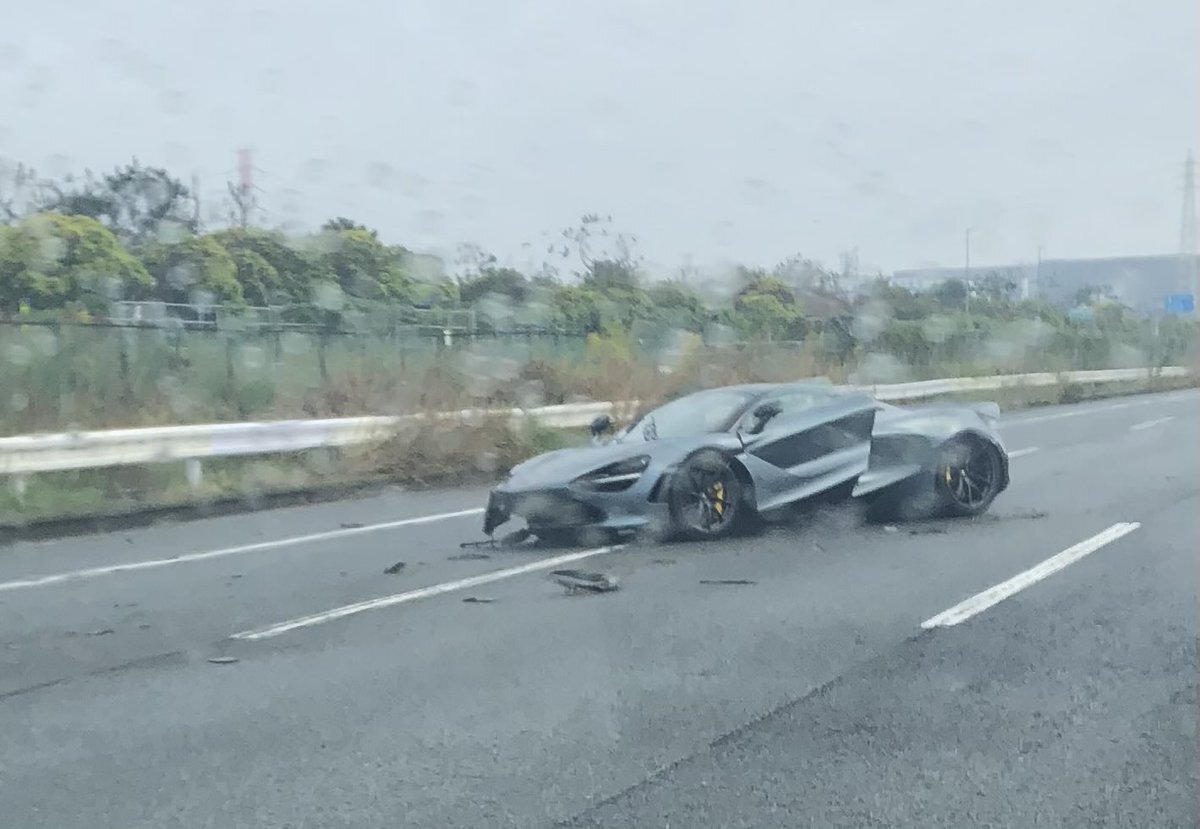 湾岸線東行きの千鳥町辺りの事故 マクラーレンの4000万くらい(テキトー)しそうなカッチョイイ車の単独だった… シエンタとかだったらブチ切れてた ※スマホは固定、音声で録画 pic.x.com/mWYvcGUPOe