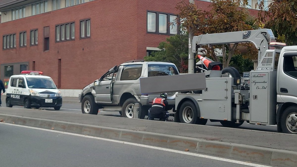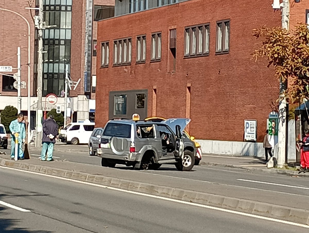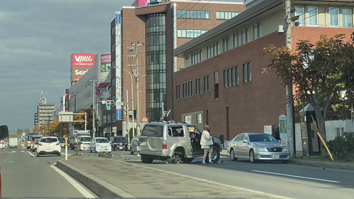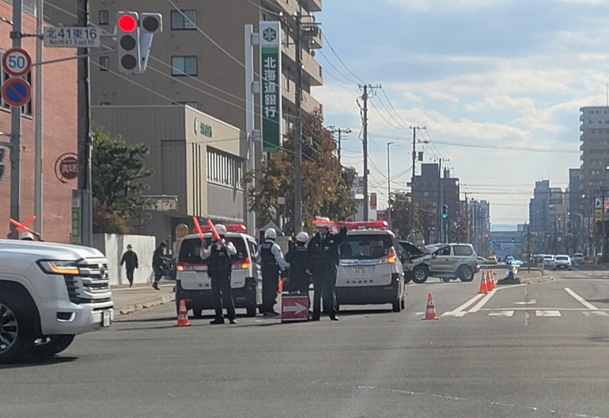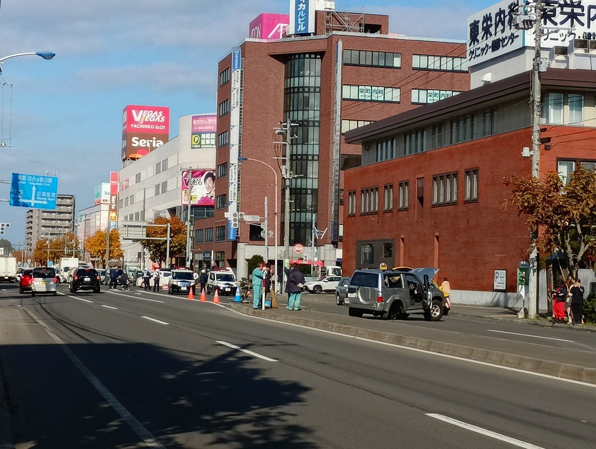 東15丁目・屯田通 通行止め 車の事故 札幌市東区北41条東16丁目3-14 栄町駅付近