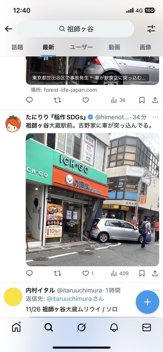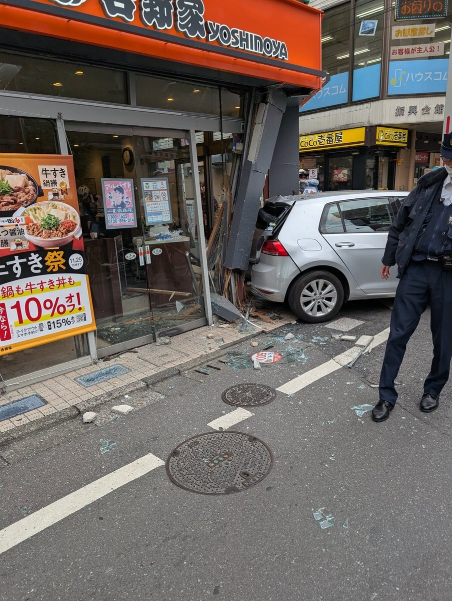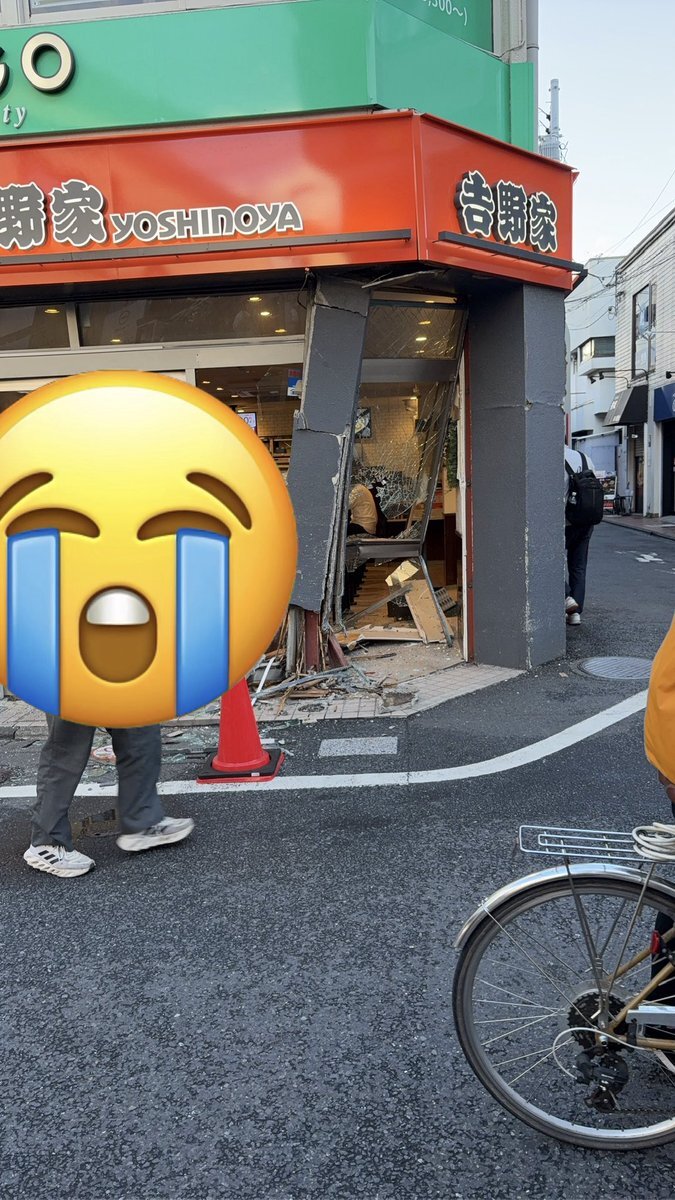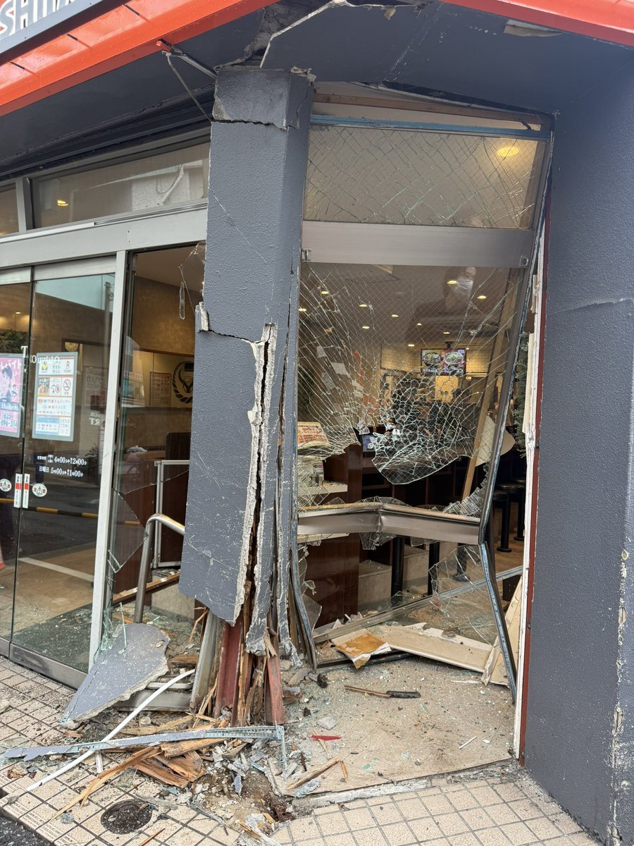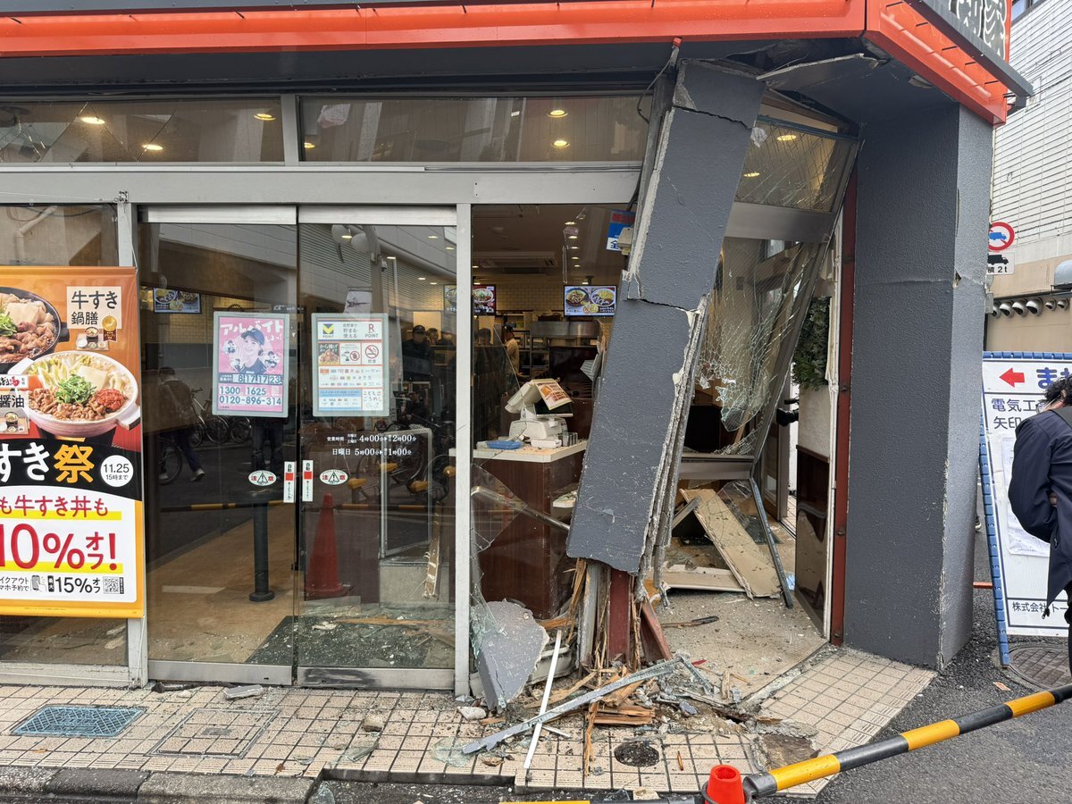 店舗に車が突っ込む事故 世田谷区砧6丁目39-6 吉野家 祖師ケ谷大蔵駅前店 ※撮影は日中