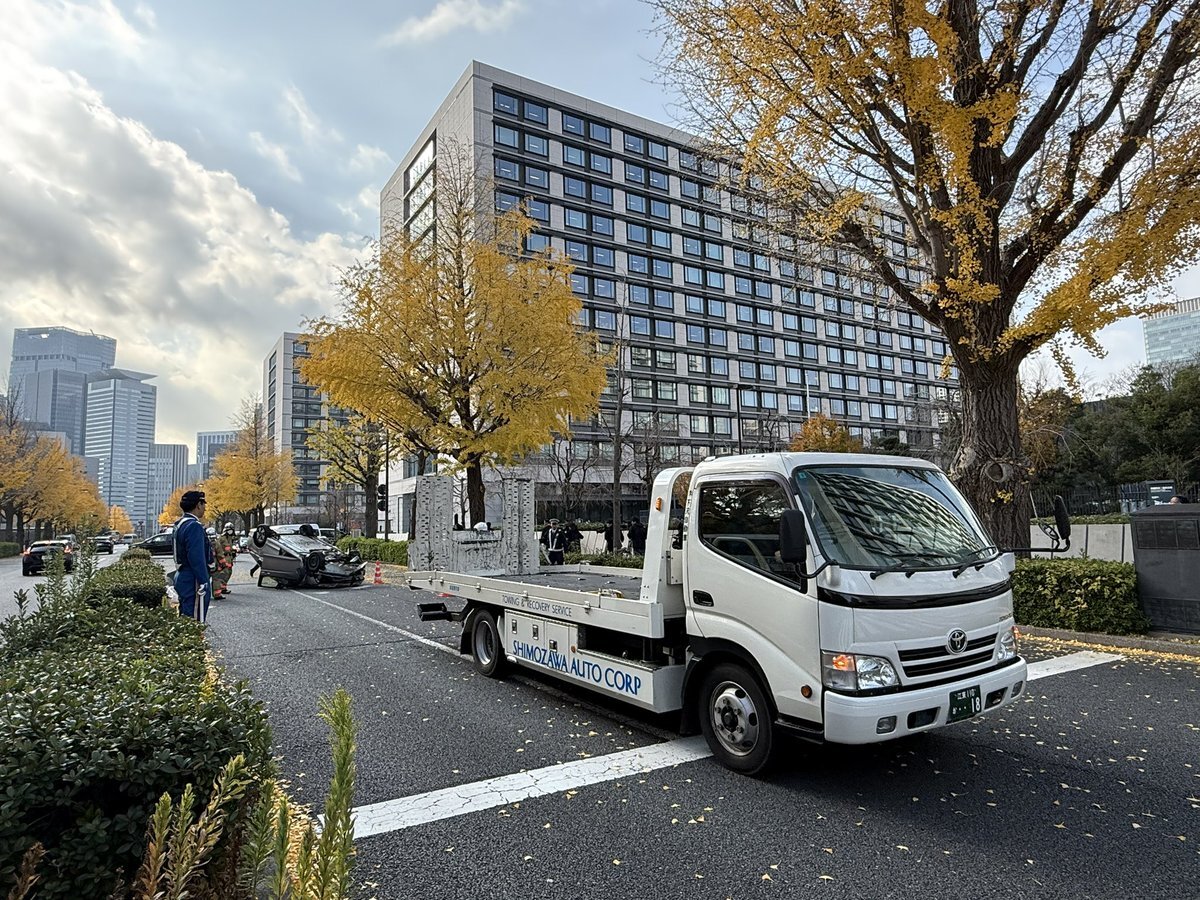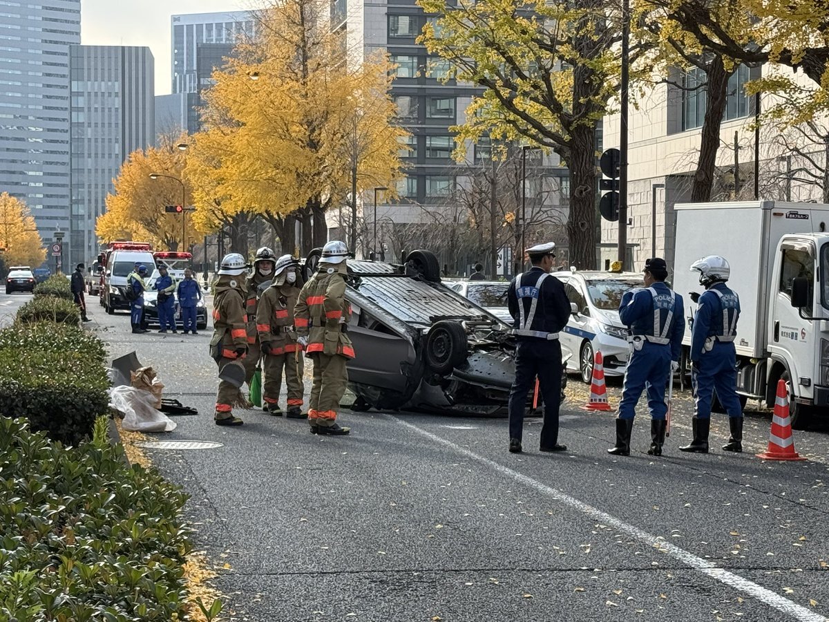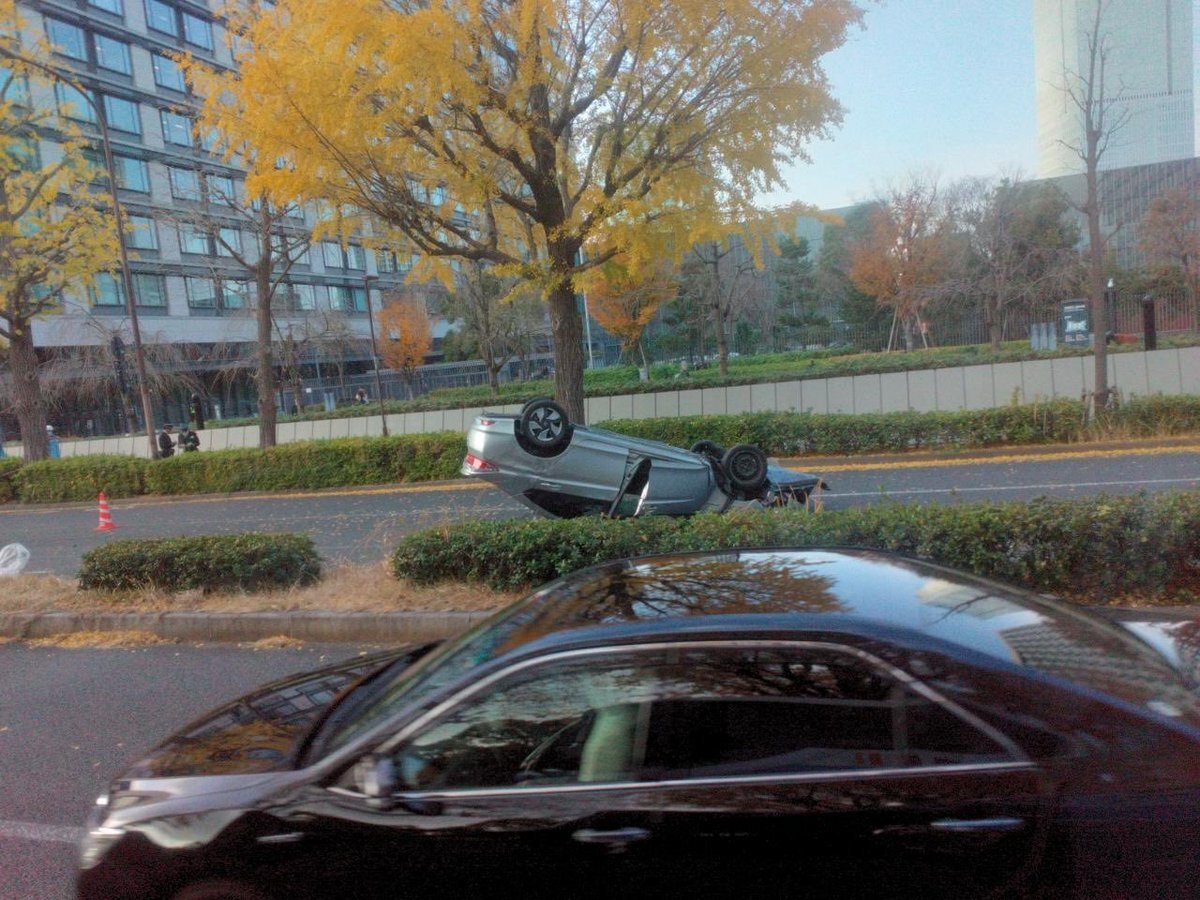 永田町バイパス 車の横転事故 千代田区 参議院会館前交差点付近