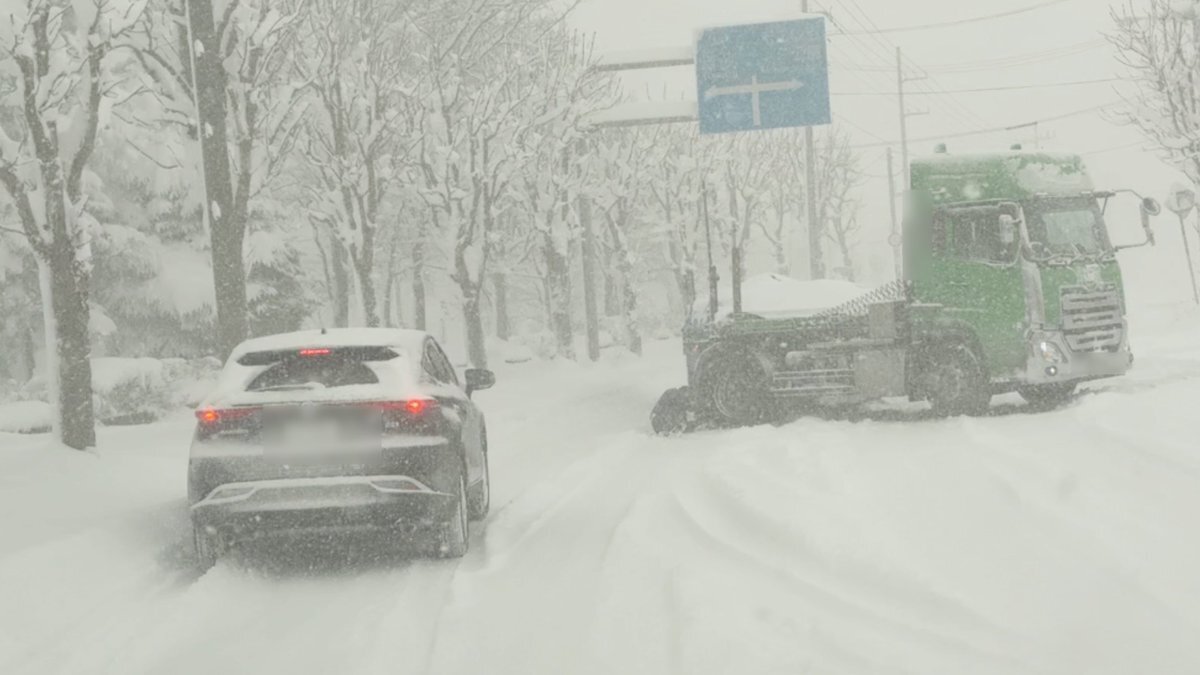 道道112号 トレーラーが立ち往生 雪の影響 札幌市北区あいの里3条9丁目21-50