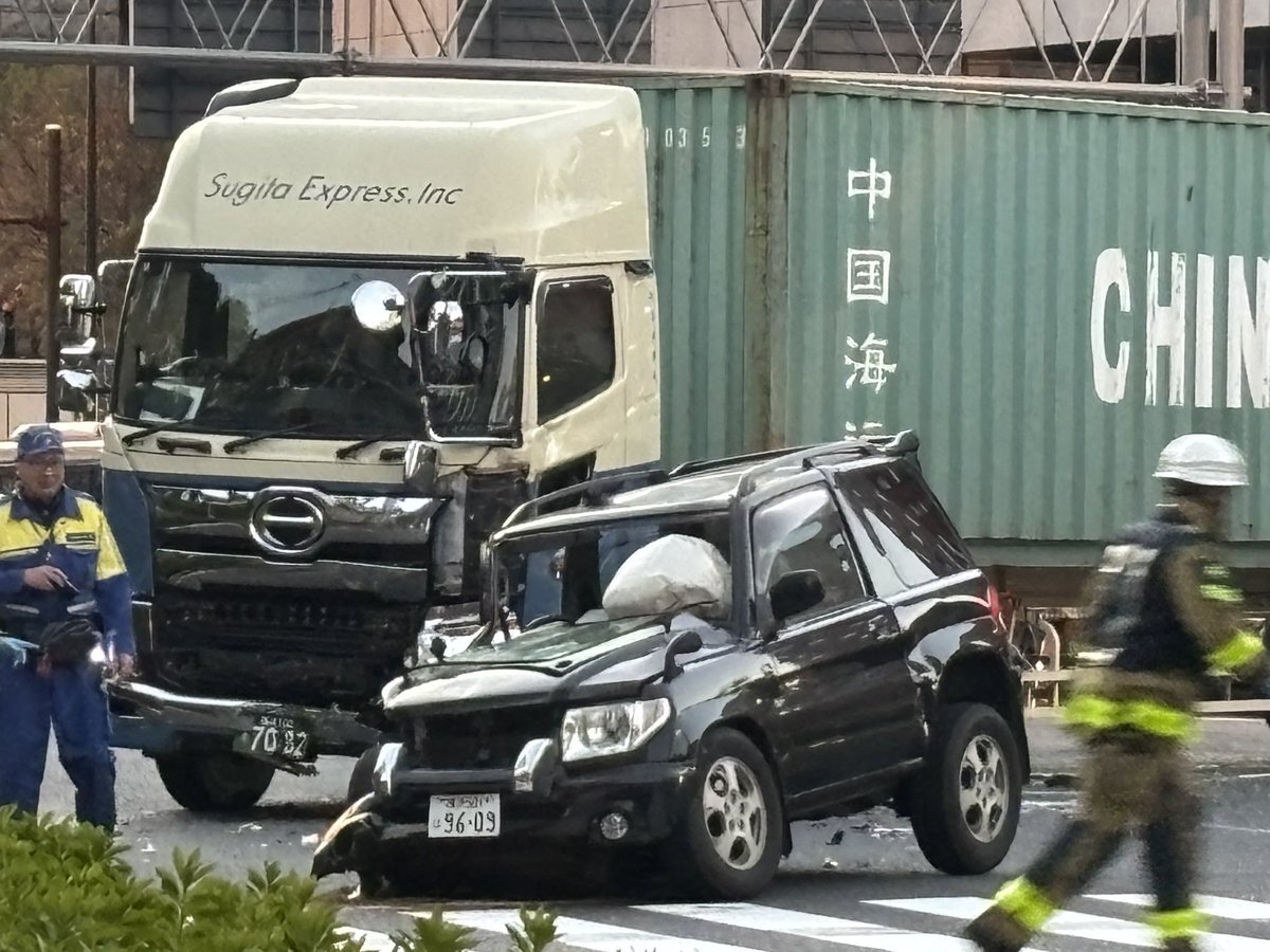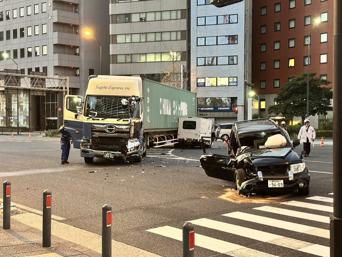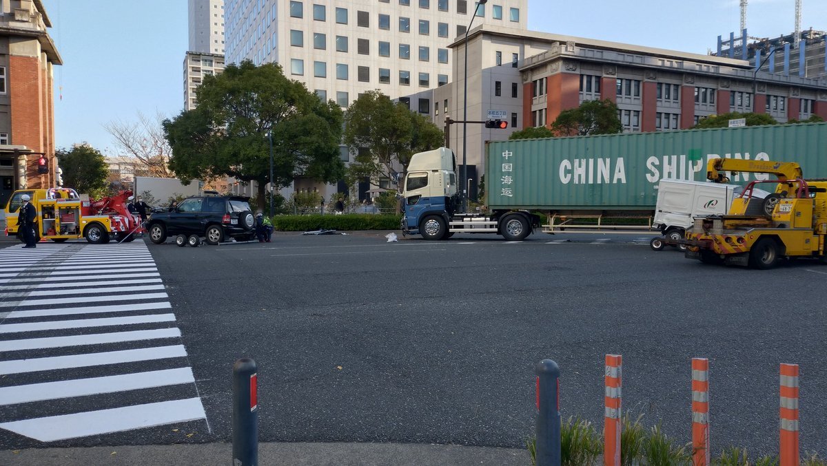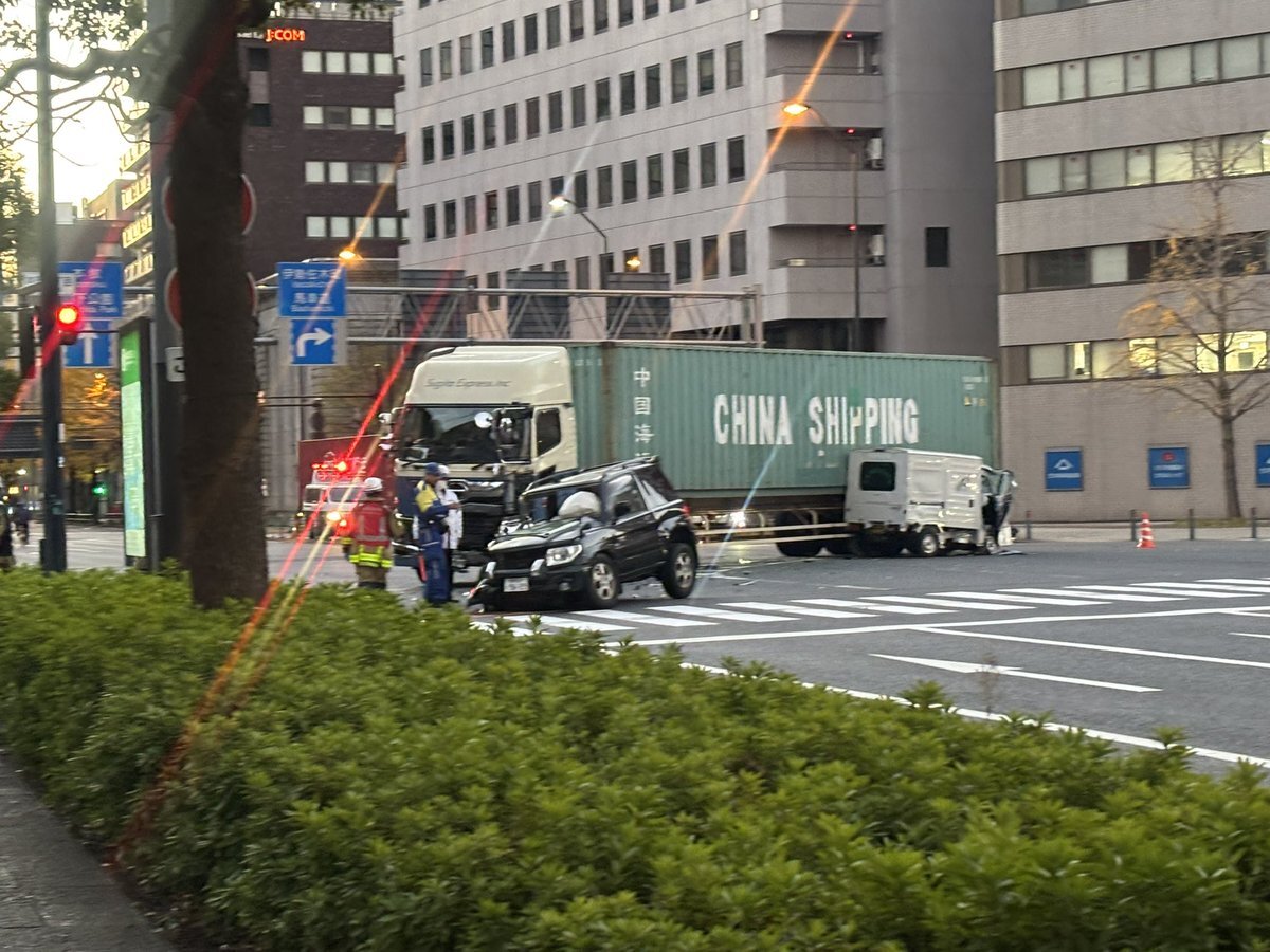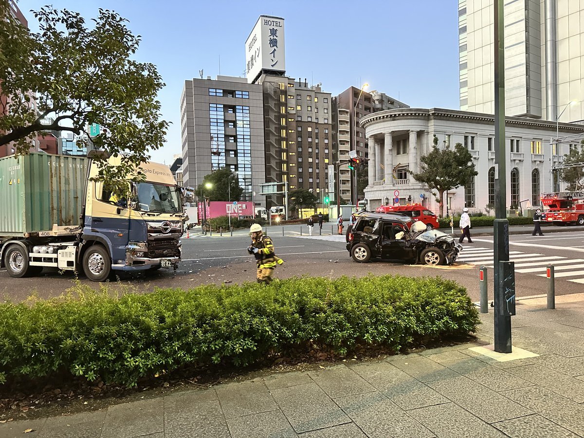 国道133号 通行止め 複数台の車の事故 横浜市中区 本町五丁目交差点