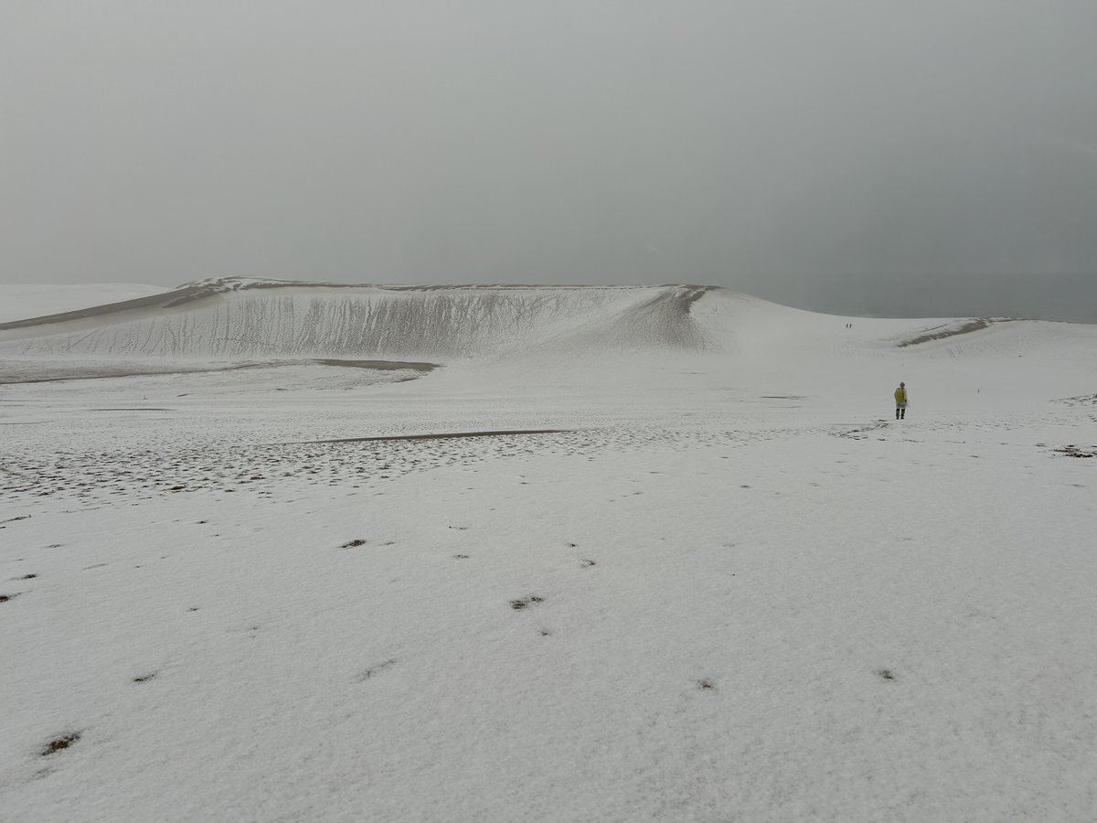 あられからの初雪です❄️ 風も強い。 当サロンの窓から、打吹山を見ています🙂 山に降った雪が風に吹かれています。 とうとう冬がやってきたのを実感。 #初雪 #鳥取 pic.x.com/Em7LknCYBg