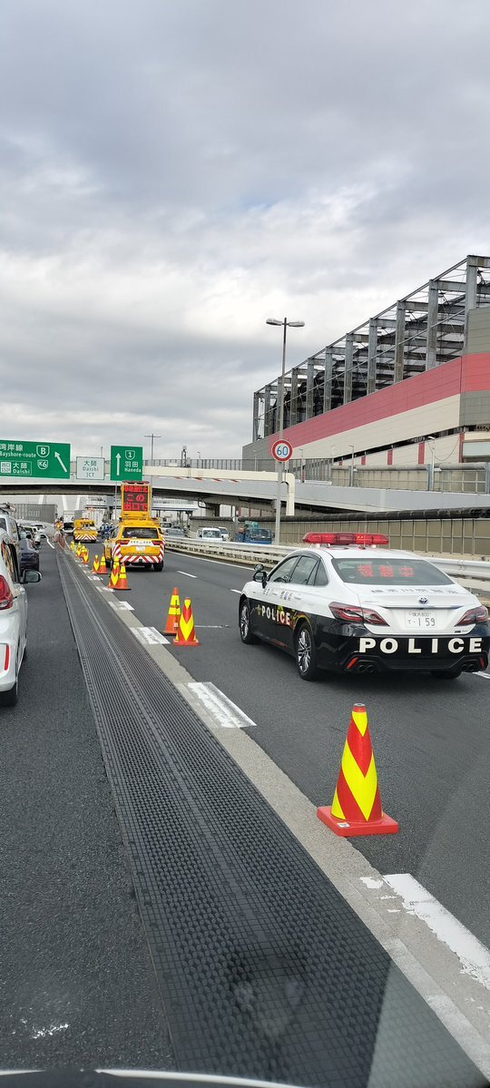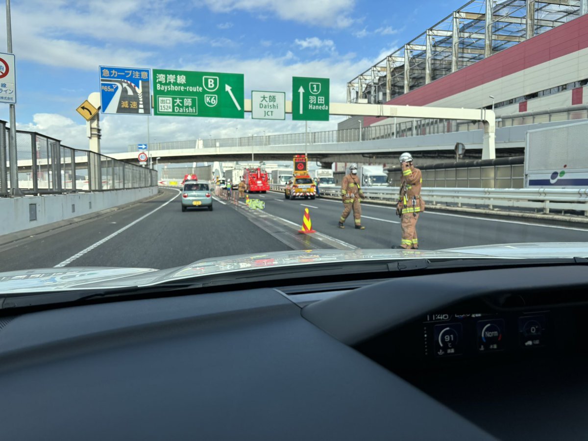 首都高神奈川1号横羽線 通行止め トラックと車の事故 大師JCT付近