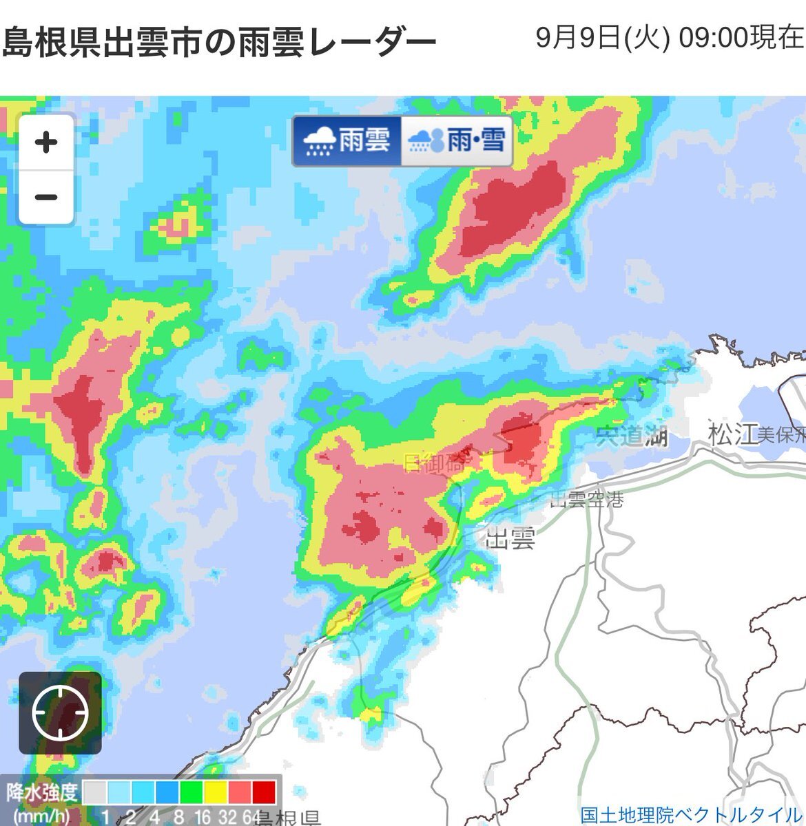 激しい雨 松江市玉湯町玉造46付近