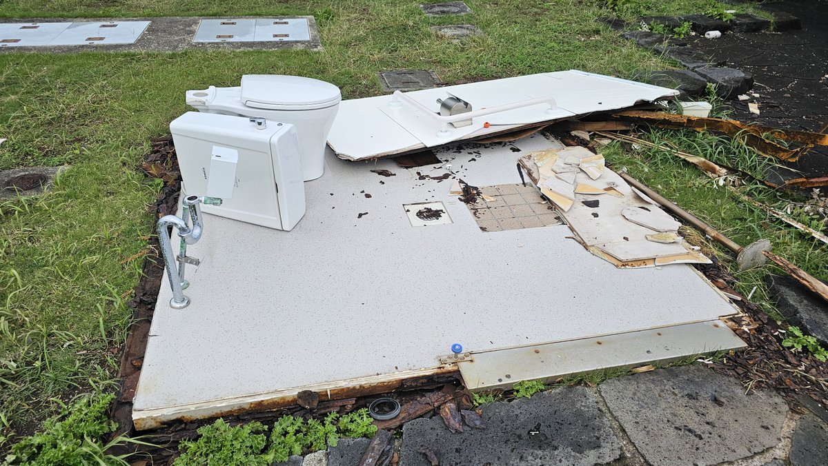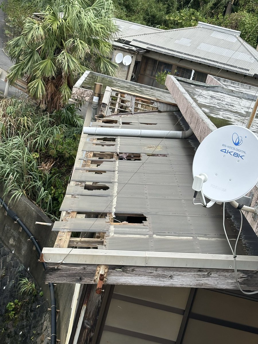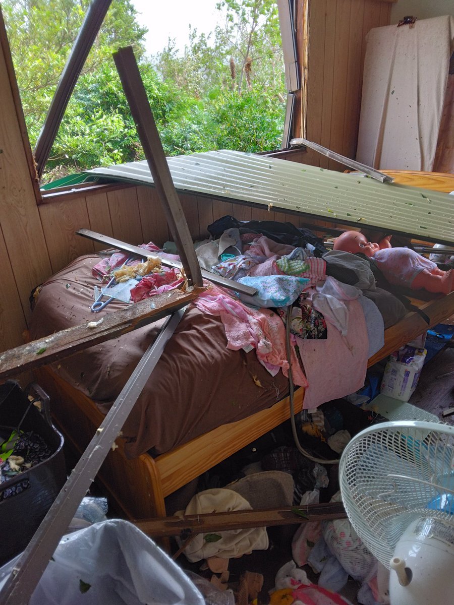 トタン2枚撤去後の部屋 3枚の板が踊り 舞った一夜 すべての服と着物がこの部屋に… 衣替え中 全シーズンの服 おっぴろげ中 押入れあけっぱなし 全部飛び散ったガラスまみれ パンツも靴下も無い 手ぬぐいと風呂敷で ふんどしもどき 創意工夫で 生き延びる #八丈島 #八丈島台風 #台風22号 pic.x.com/CS8MvnHScX