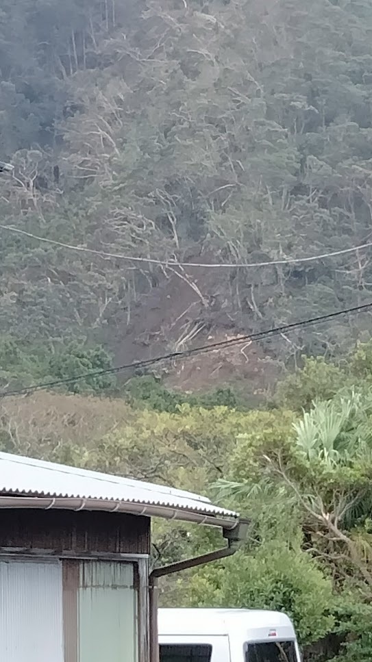 穏やかさを取り戻しつつある藍ヶ江です 家は少々トタンが持っていかれた程度 神社の裏手(あいがえスタンドの駐車場)は崩れてる 足湯は傾き、お向かいさんは屋根が… 温泉周りの道も倒木や崩れがあるので注意です pic.x.com/Jot88fxAxC