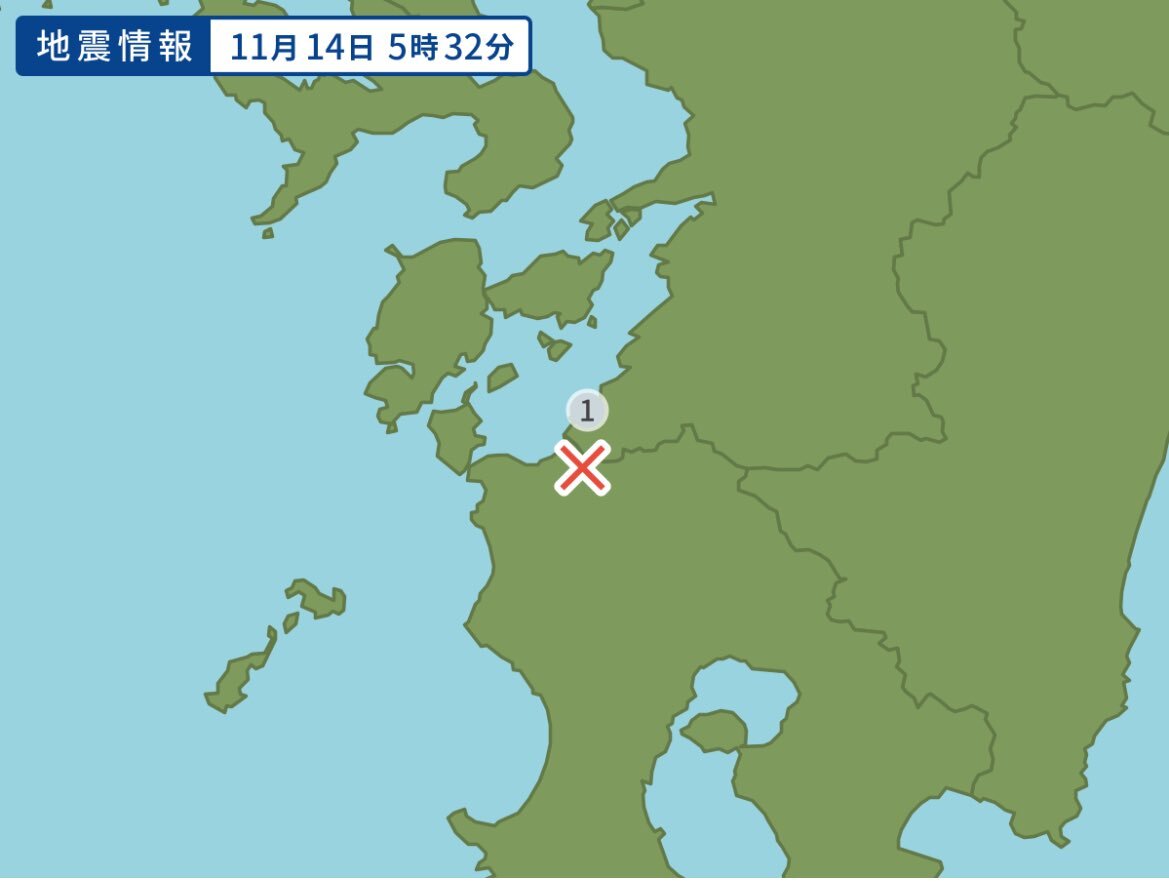 【地震情報】 2025年11月14日5時32分、鹿児島県薩摩地方(鹿児島本線出水駅北東4km)を震源とする震源深度ごく浅い/M2.0/最大震度1(水俣市陣内)の地震が発生しましたが津波はありませんでした。 pic.x.com/d0LBYv3xV3