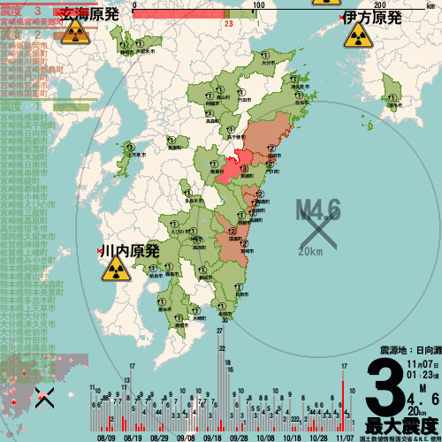 【週刊地震情報】 3日(月)の夕方から 夜に、鹿児島県・薩摩地方で 有感地震が多発した。 桜島や霧島山からは… 少し離れていて 火山活動と直接関連するような地震では ないとみられます また、今朝は三陸沖で地震が頻発している !11/03から?…03/11…09/11… !ますます気になる…11/11… x.com/wni_jp/status/…
