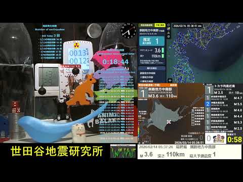 2026/02/14 5:37:26 釧路地方中南部で地震 ・最大震度1 ・マグニチュード3.6 ・深さ110km Earthquake hits central and southern Kushiro region Japan M3.6 ★発生時の記録映像は↓こちらより youtu.be/7oLpuJxUMog #地震 #緊急地震速報 #earthquake