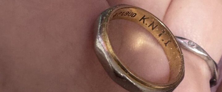 再婚している🐼 明らかに結婚指輪なデザインの指輪が出てくる。気まずい空気が流れる我が家。 リングの中を見ると『K.N T.I』 南條晃司と泉拓人(BRONZE)の公式の指輪(受注生産)だ!!!!!無くしたと思ってたのに!!!