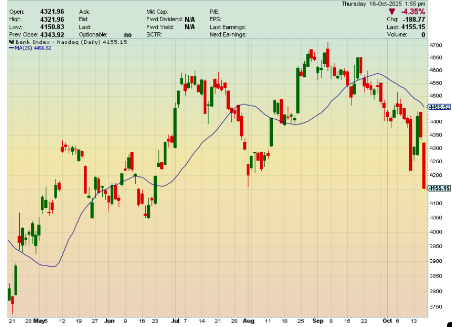 10月16日頃から、VIX指数が上昇傾向にあり、25を超える水準に達しました。この上昇は、米国の地銀の融資問題や米中貿易摩擦の懸念など、市場の不安定さを反映していると考えられます。