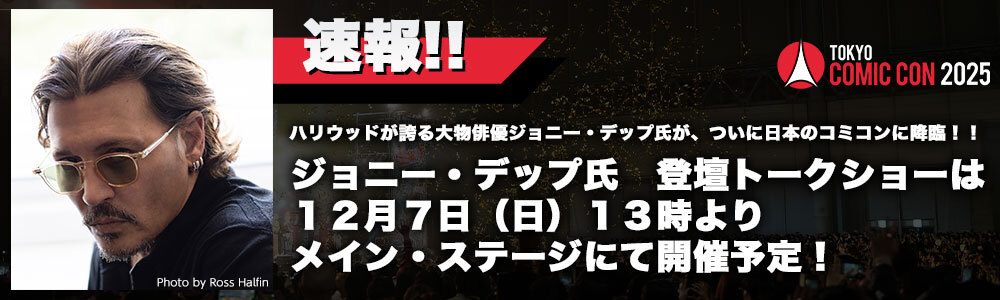 AI東京コミコン2025に、ジョニー・デップ、ノーマン・リーダス、ショーン・パトリック・フラナリーが来場することが発表されました。ジョニー・デップは12月6日と7日に来場し、サイン会や写真撮影会を実施予定です。特にジョニー・デップのサイン会・撮影会は世界初となるようです。