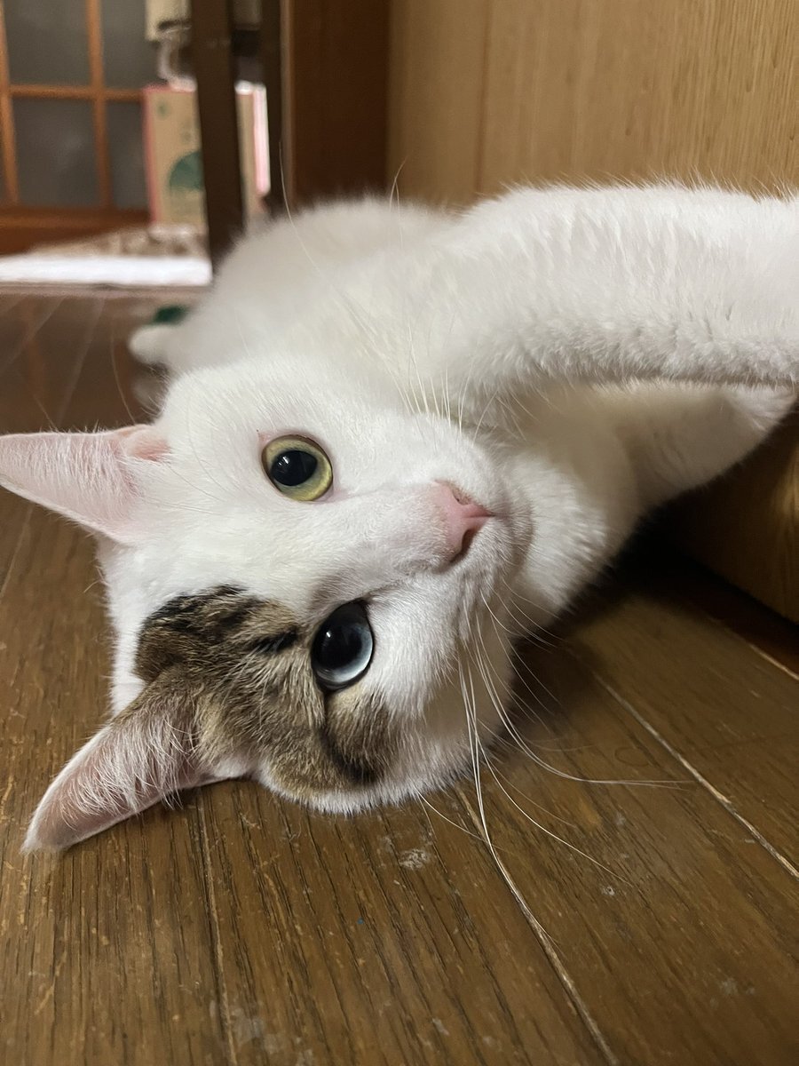 昔はどっちも同じ色合いだったけど、 年をとるにつれて右側の目の色が変わってきたんやで。 お医者さんに聞いても特に病気では無いらしいので、 そのままにしてるやで。 pic.x.com/AMBUgcEqfC